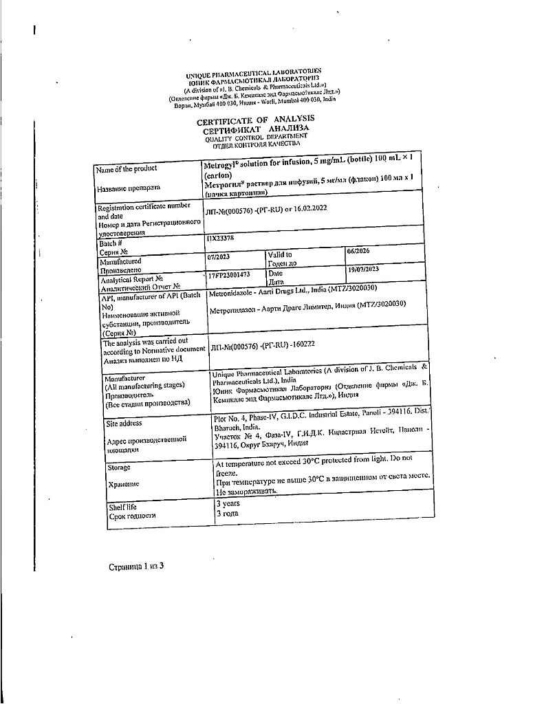 Производитель: Юник Фармасьютикал Лабораториз, Индия