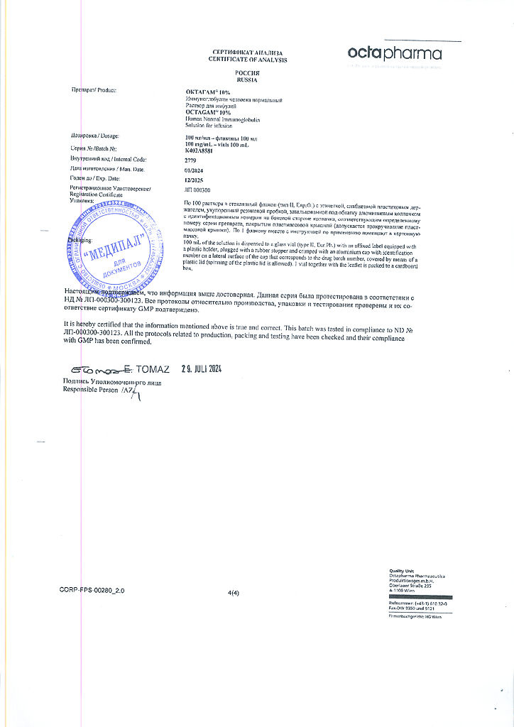 • Препарат хранить при температуре от 2 до 8°С, в защищенном от света месте. Не замораживать. Хранить в недоступном для детей месте.
