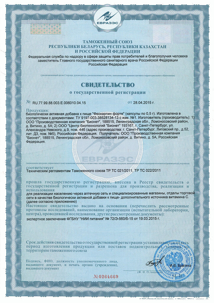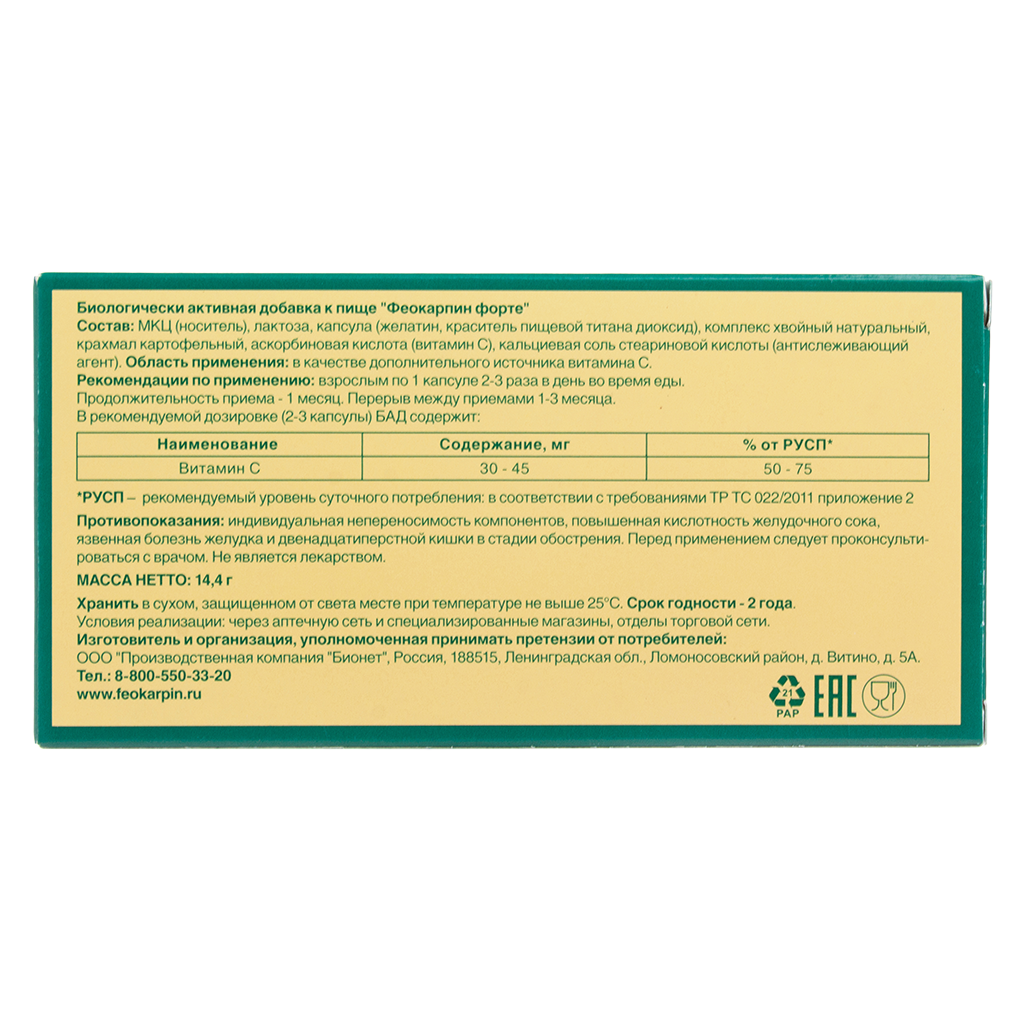 Феокарпин форте капсулы по 0,5 г 24 шт