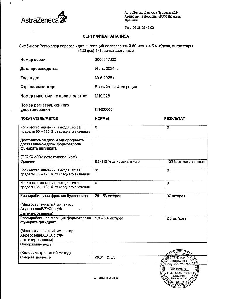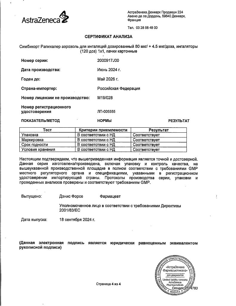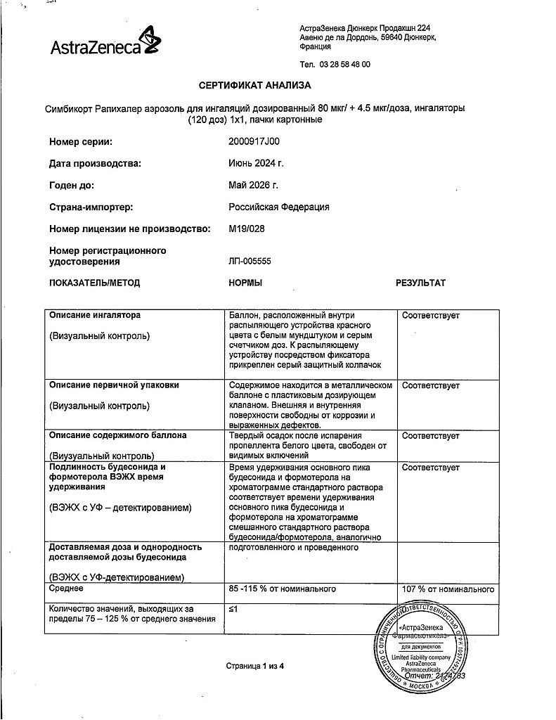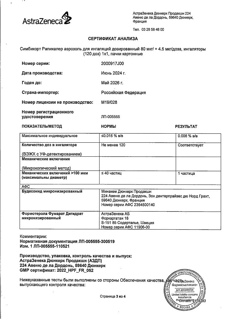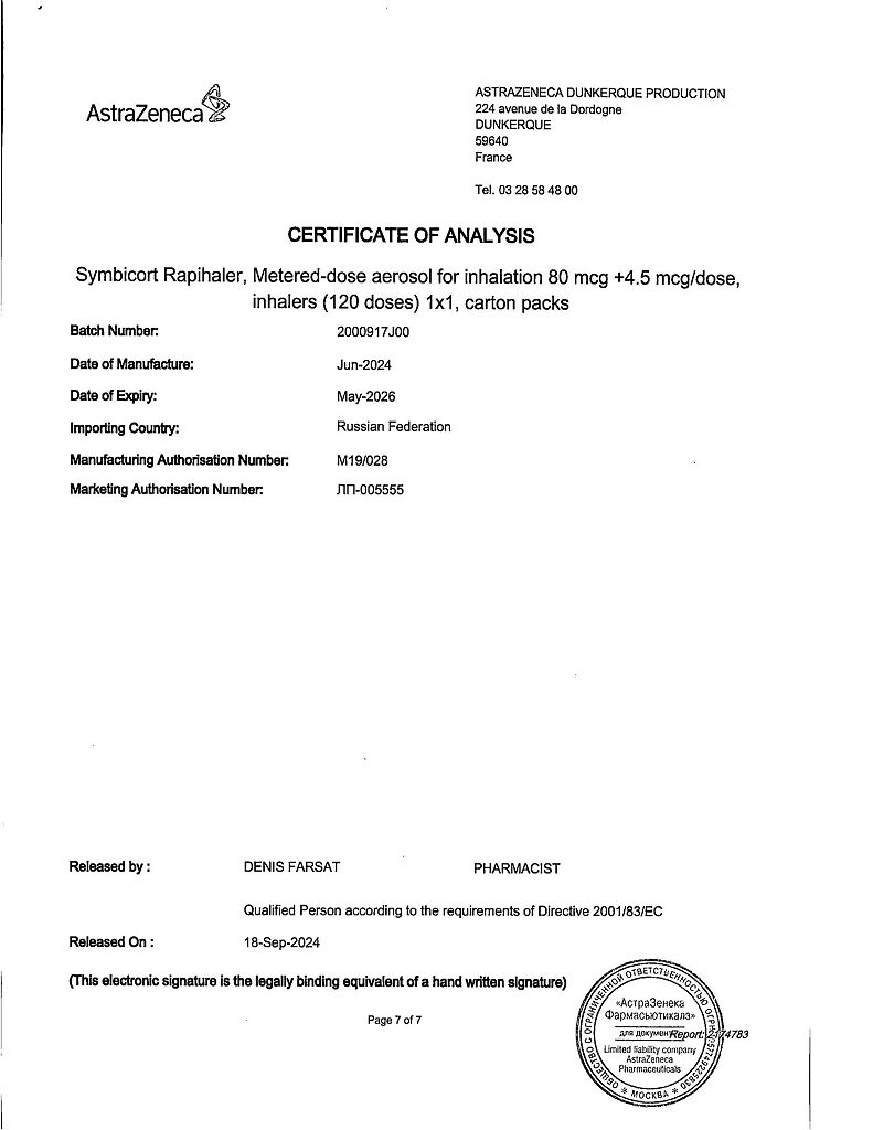 Производитель: АстраЗенека Дюнкерк Продакшн, Франция