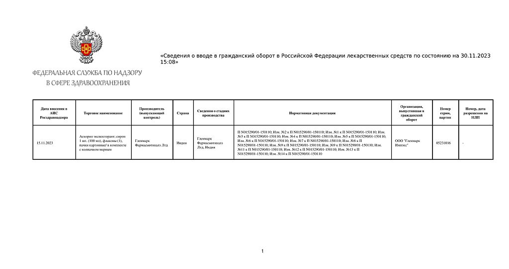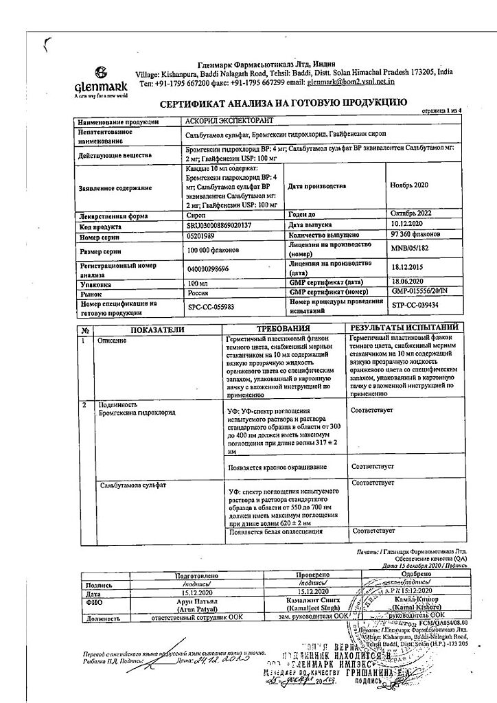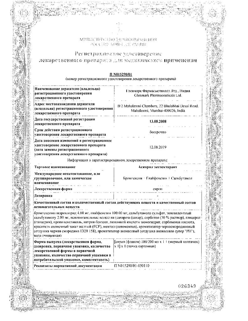 • Информацию об акциях и скидках на Аскорил экспекторант уточняйте на нашем сайте.