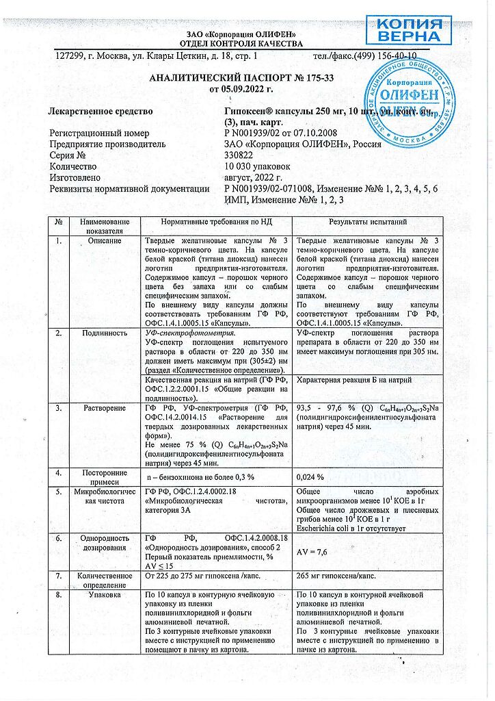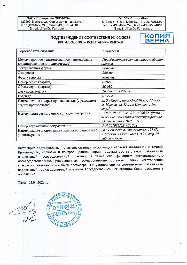 Действующее вещество: Полидигидроксифенилентиосульфонат натрия