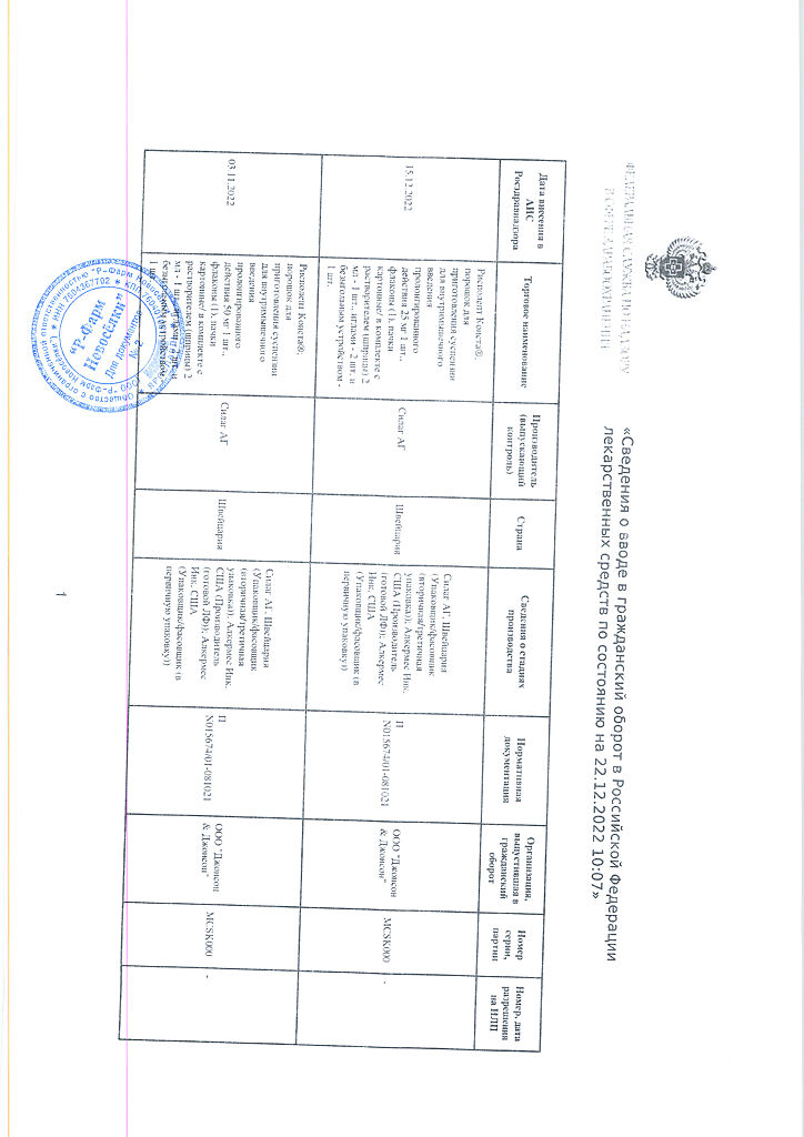 Страница носит информационный характер о наличии препаратов. Перед назначением и применением проконсультируйтесь с врачом