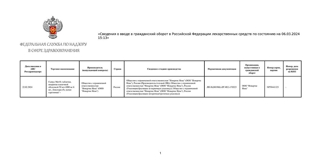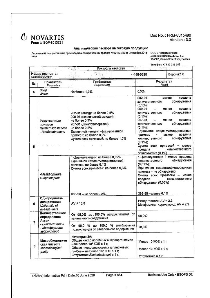Документы Галвус Мет таблетки покрыт.плен.об. 50 мг+1000 мг 30 шт
