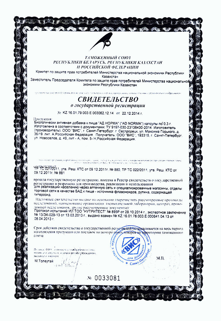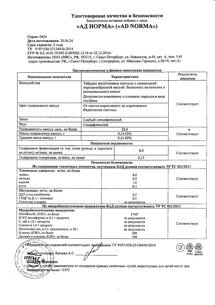 Документы АД Норма / AD Norma капсулы по 0,3 г 60 шт