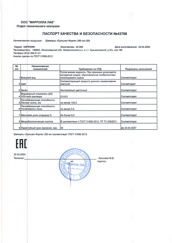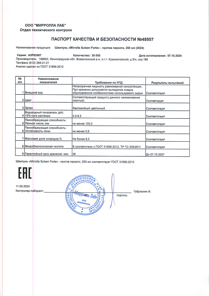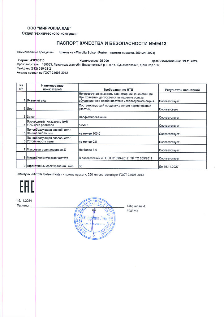 Производитель: Мирролла Лаб, Россия