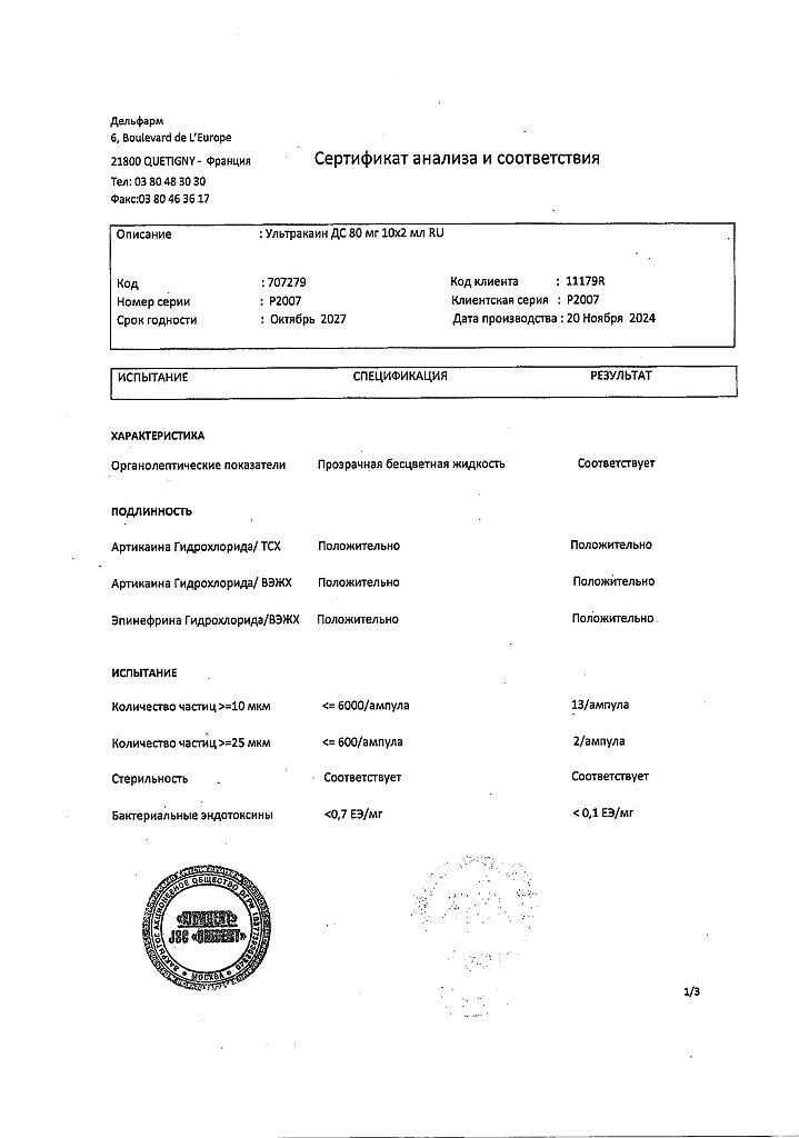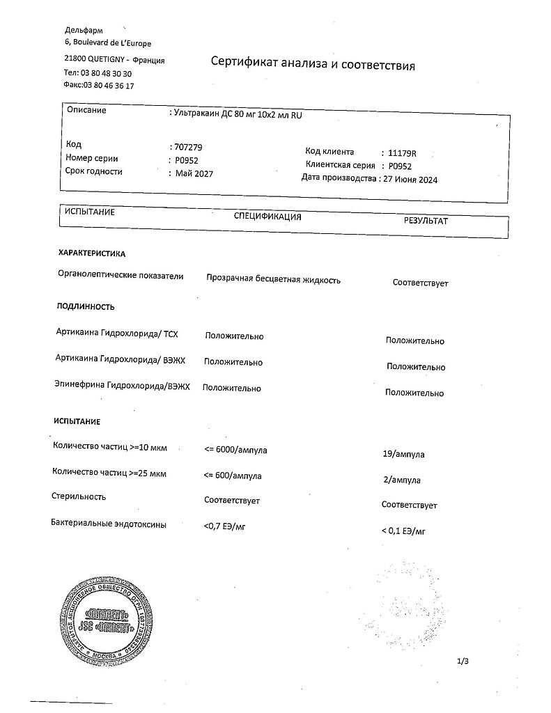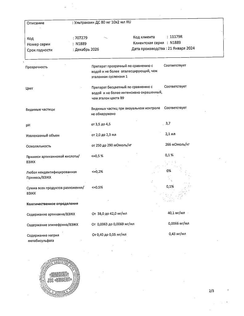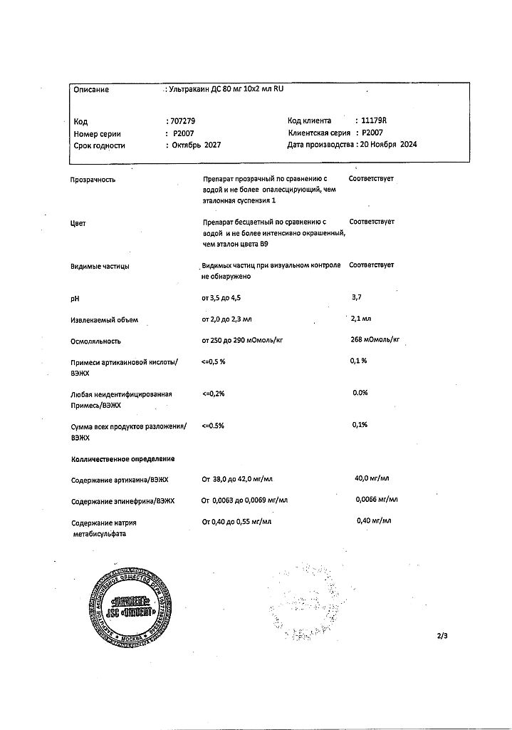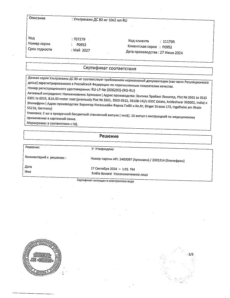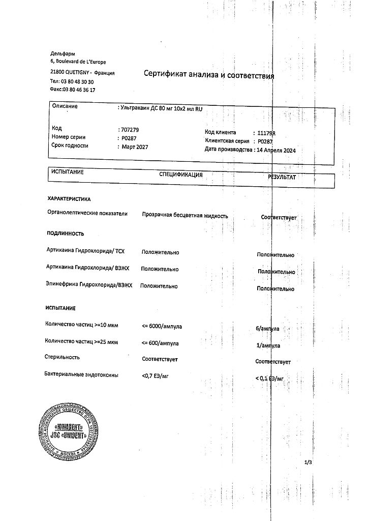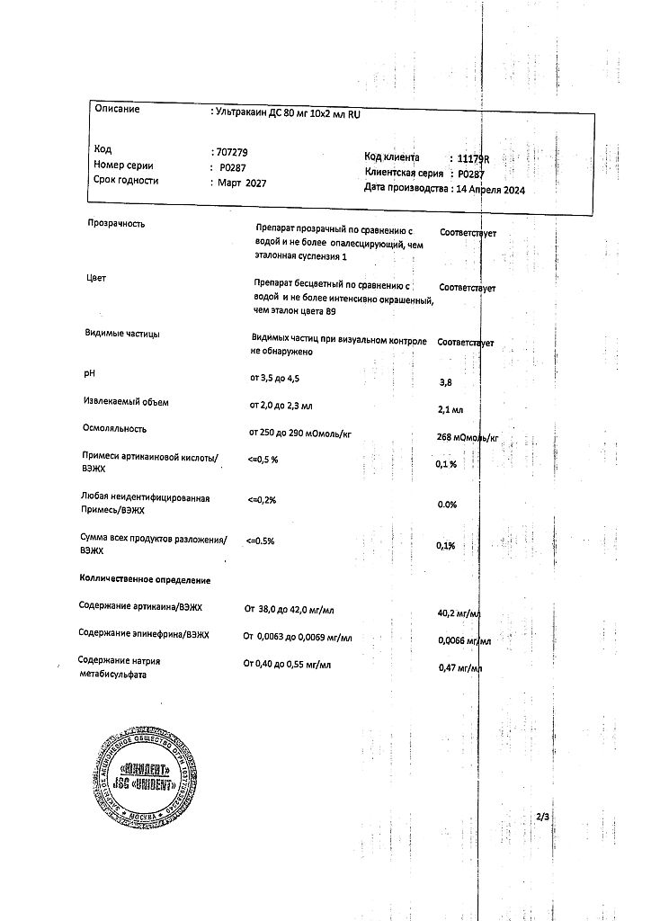Документы Ультракаин Д-С раствор для инъекций 40 мг+0,005 мг/мл 2 мл амп 10 шт