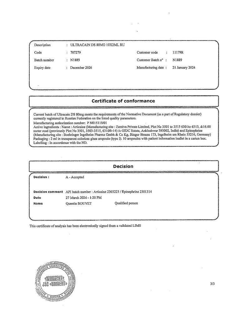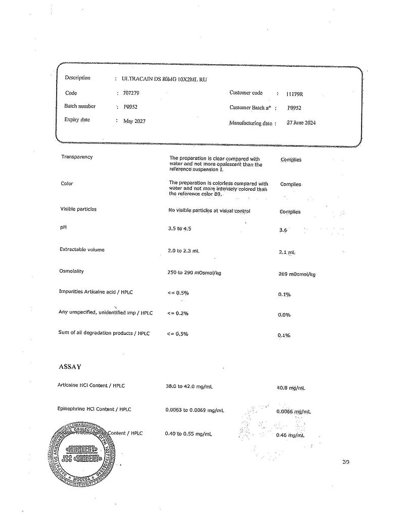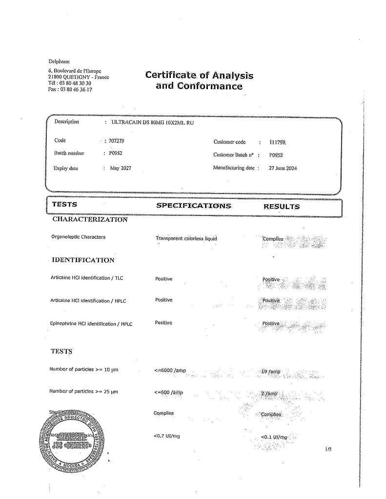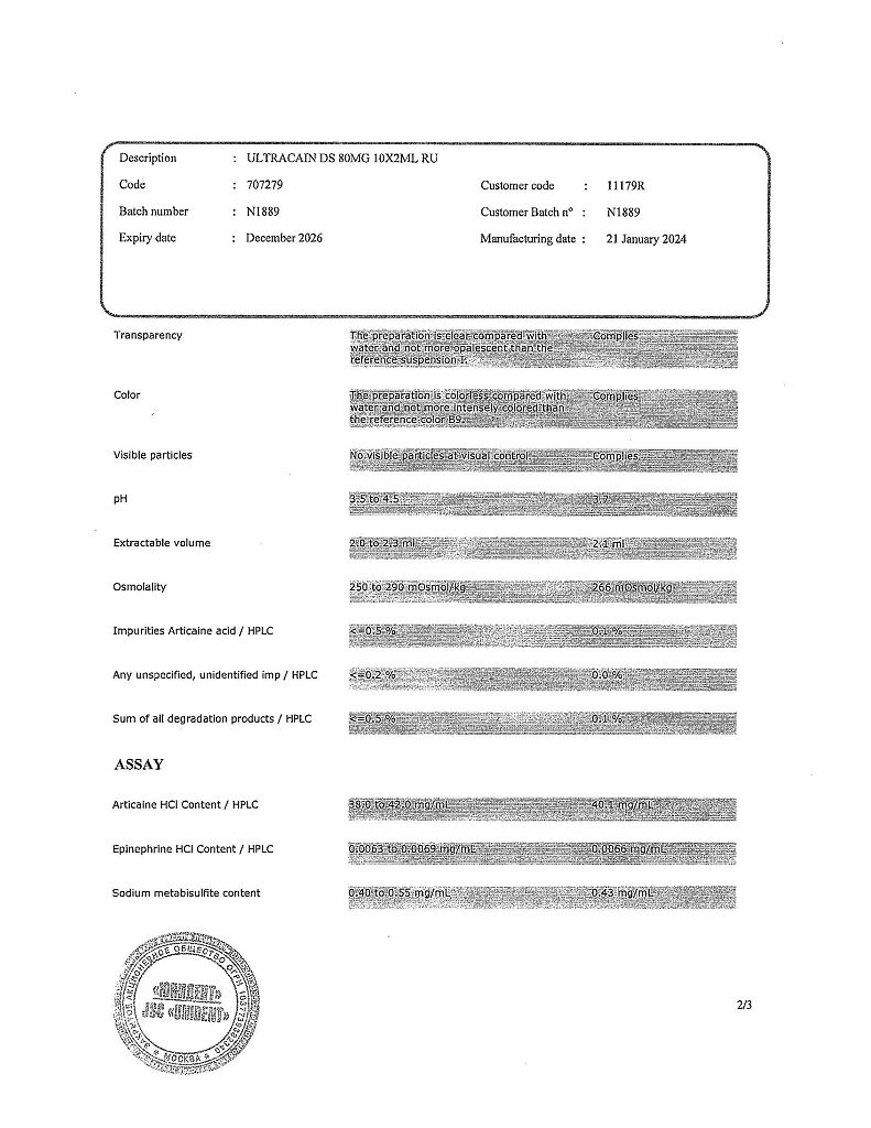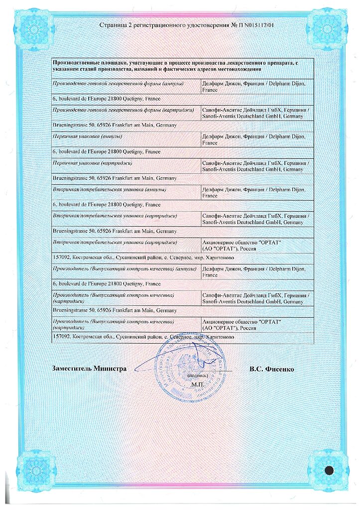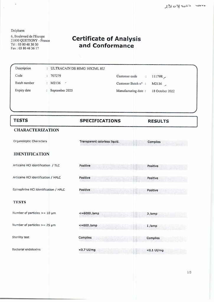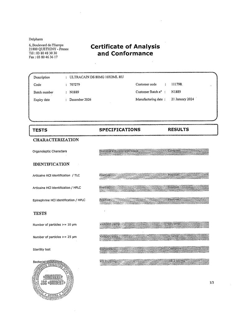 Документы Ультракаин Д-С раствор для инъекций 40 мг+0,005 мг/мл 2 мл амп 10 шт