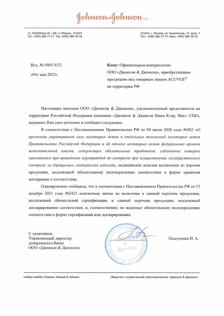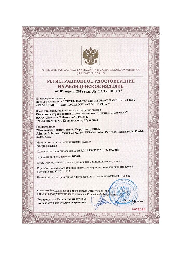 Производитель: Джонсон и Джонсон Вижн Кэер Инк, США