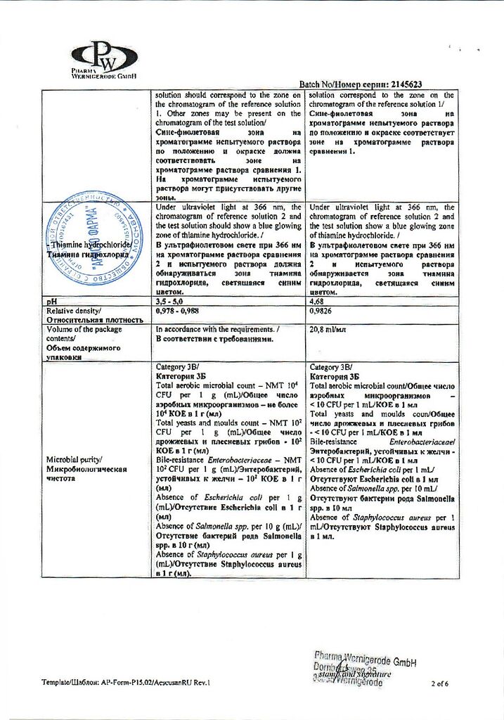 Действие тиамина уменьшается при одновременном применении с сульфитсодержащими инфузионными растворами.