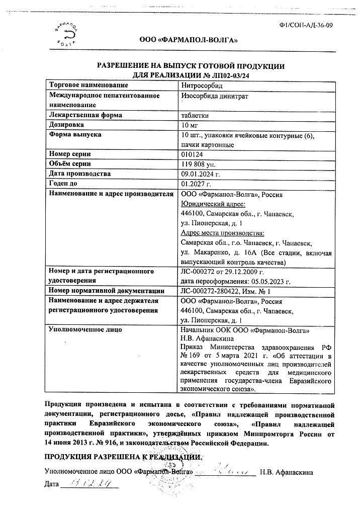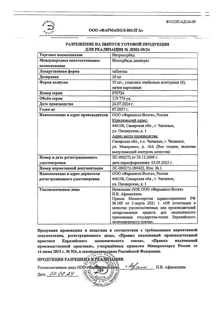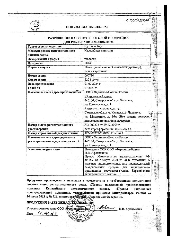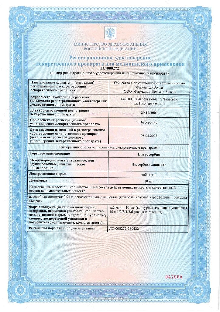 Для приема внутрь, сублингвально, буккально: купирование и профилактика приступов стенокардии, восстановительное лечение после инфаркта миокарда. Хроническая сердечная недостаточность (в составе комбинированной терапии), некоторые формы легочной гипертензии, легочного сердца (в составе комбинированной терапии).