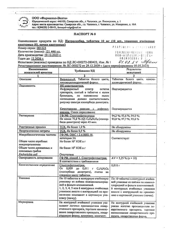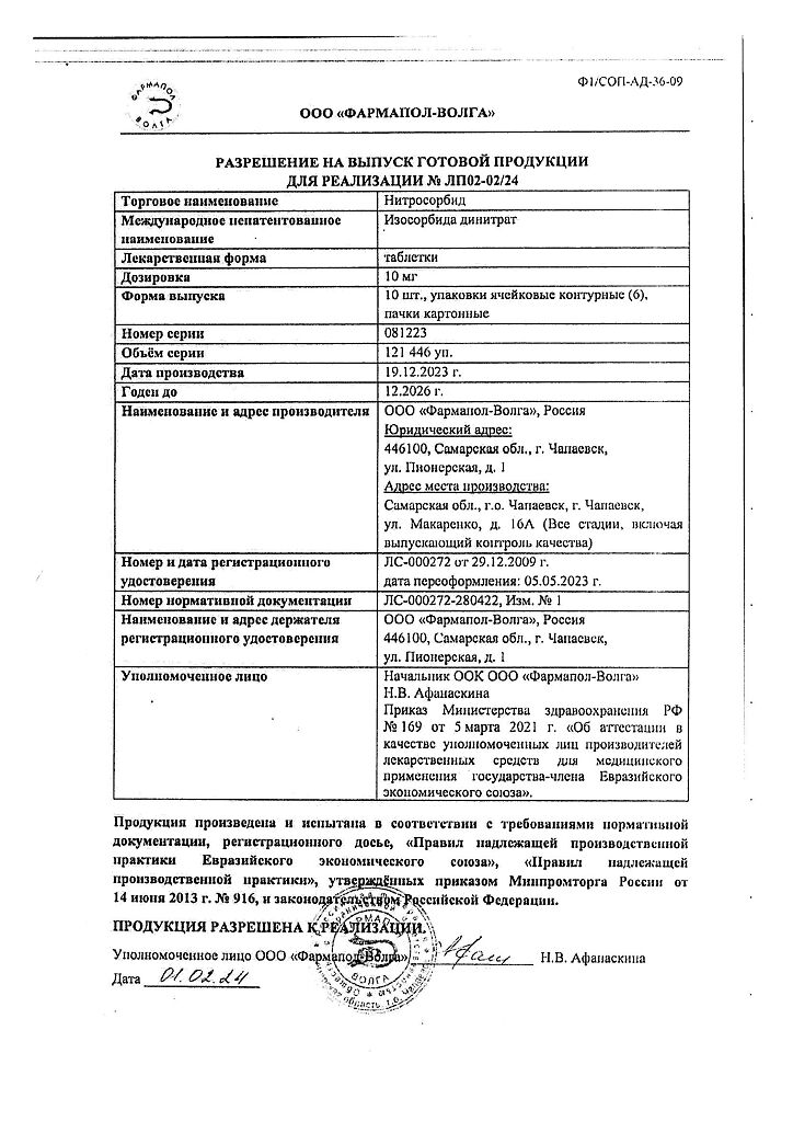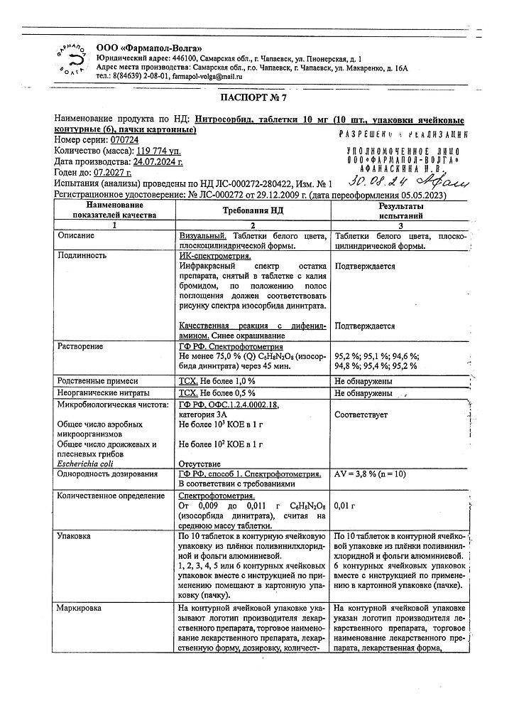 При одновременном применении с адсорбентами, вяжущими и обволакивающими средствами уменьшается абсорбция изосорбида динитрата.