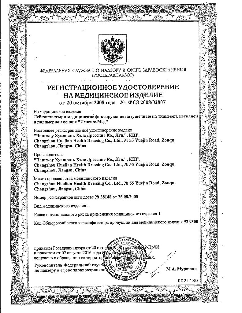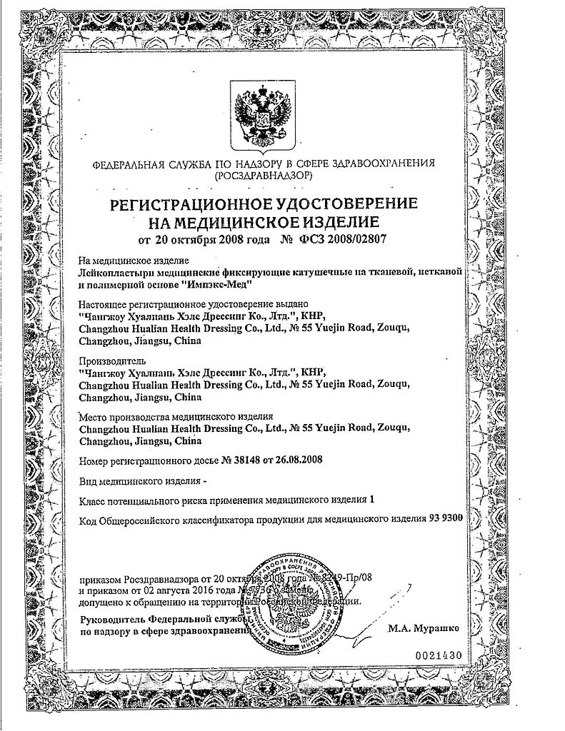 Документы Клинса Лейкопластырь фиксирующий на нетканой основе белый 2 х 500 см 1 шт