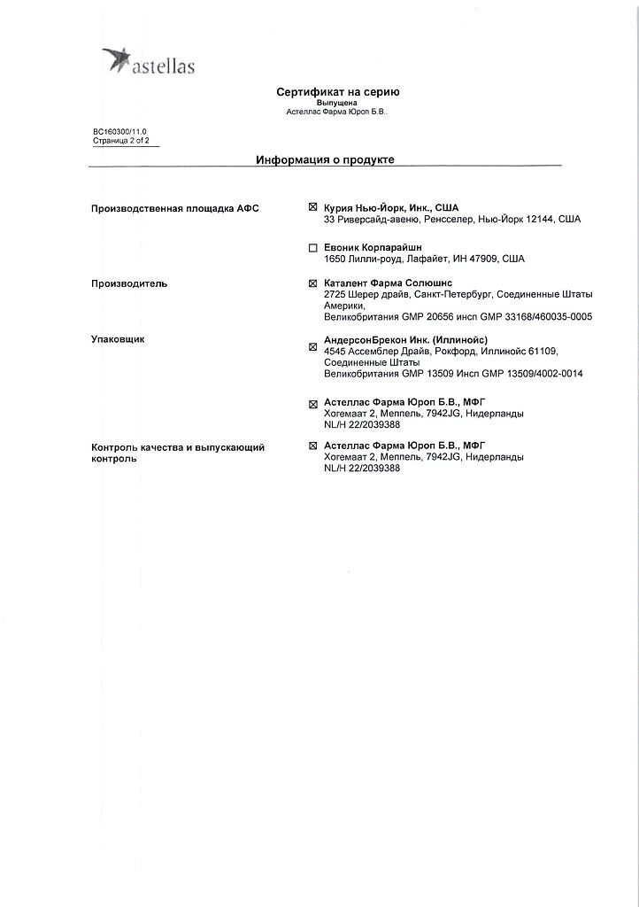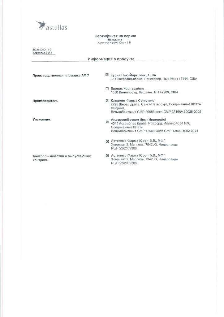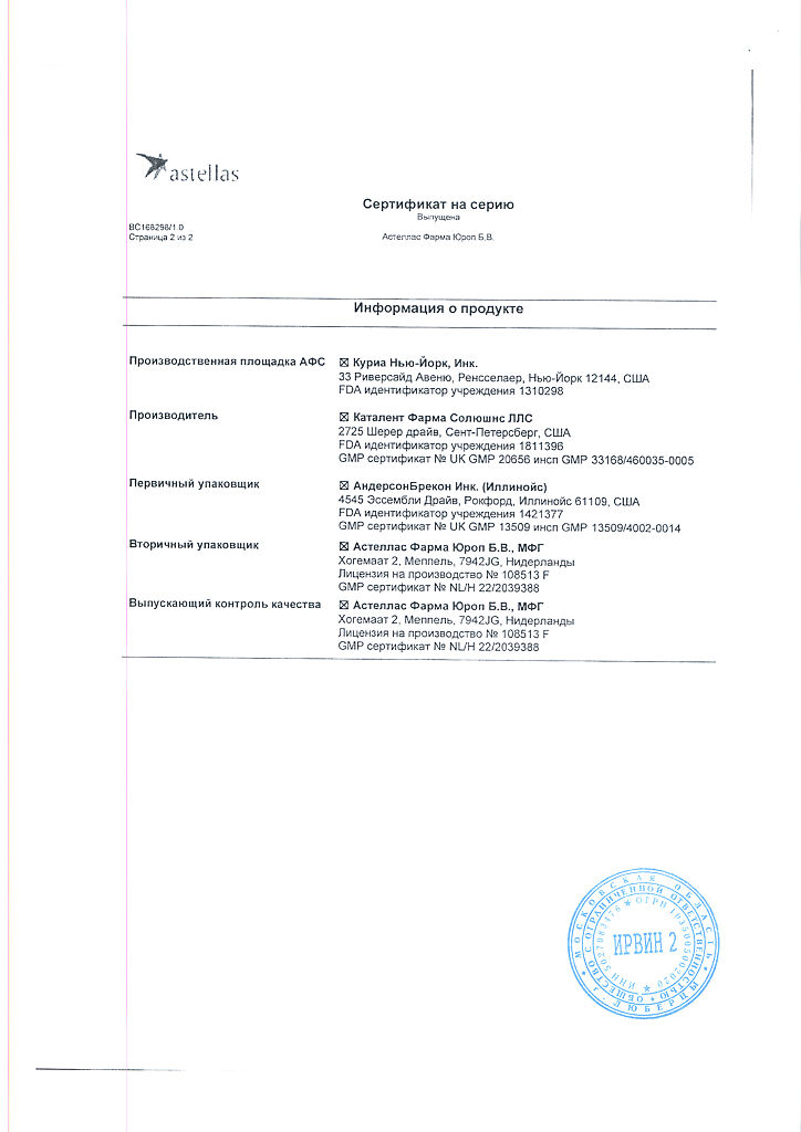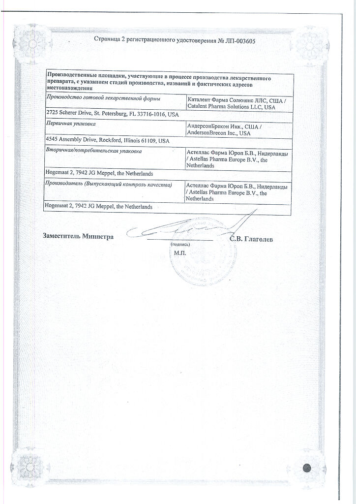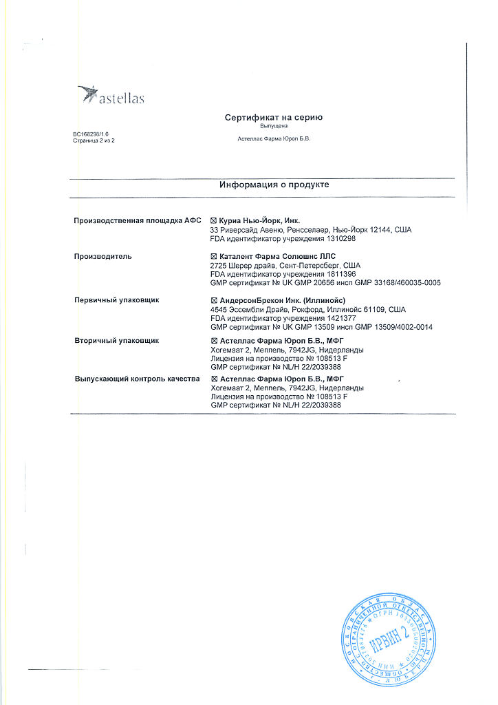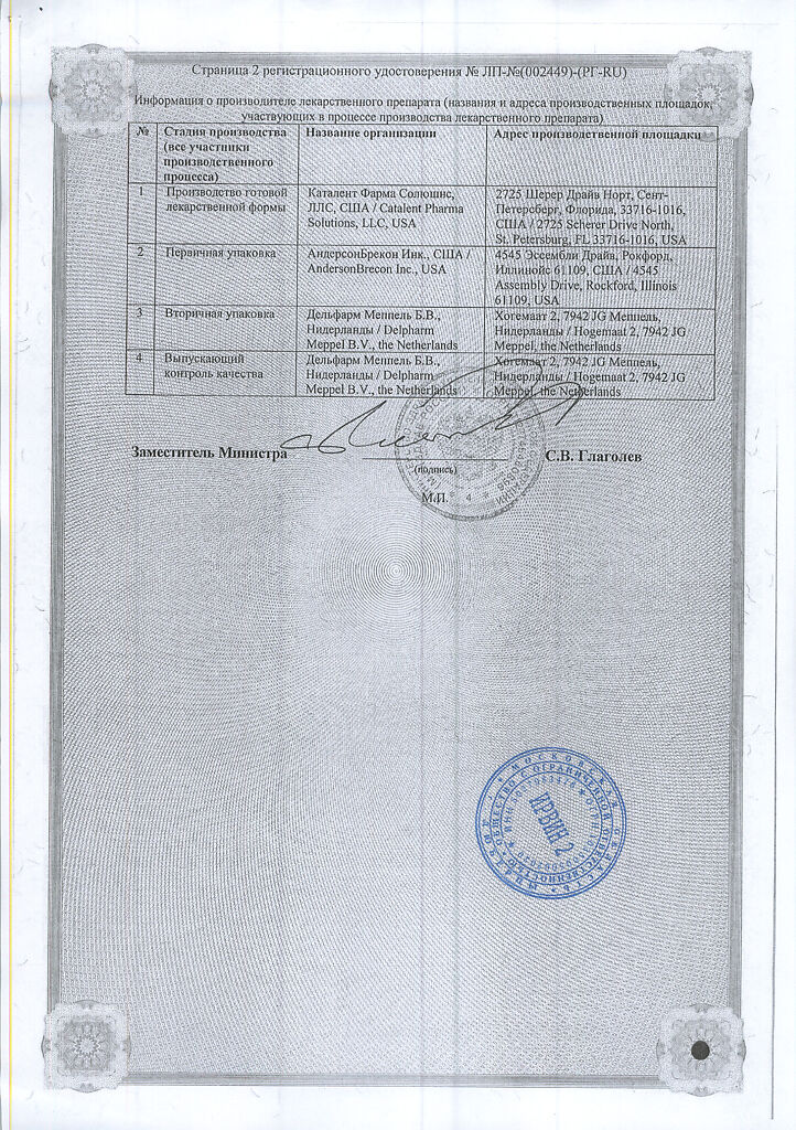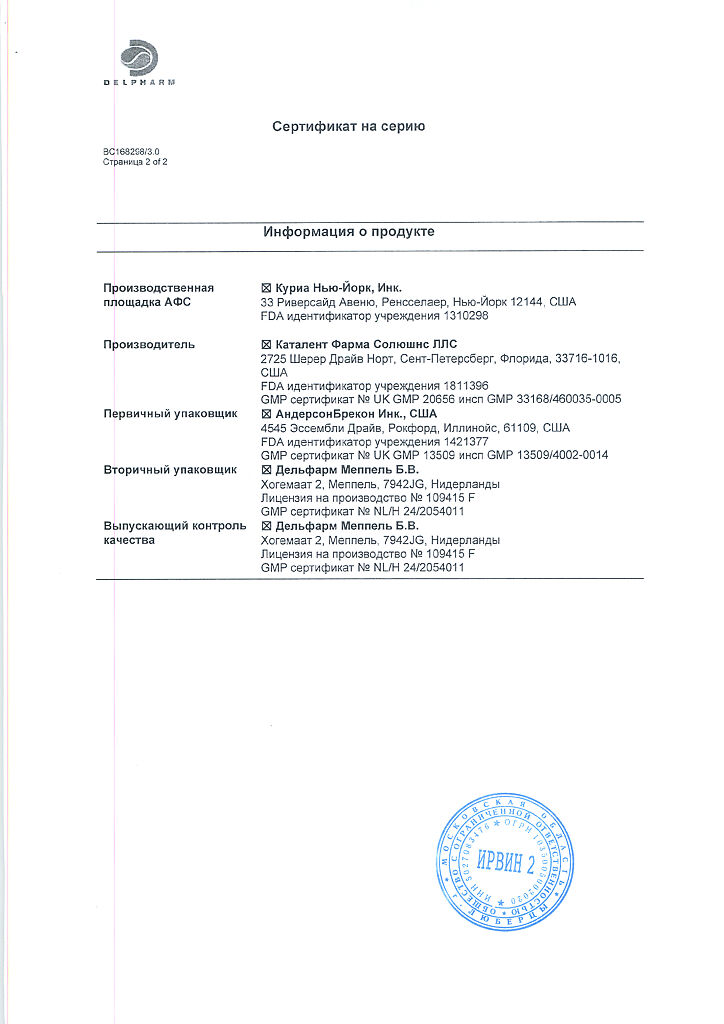 Производитель: Каталент Фарма Солюшнз ЛЛС, США