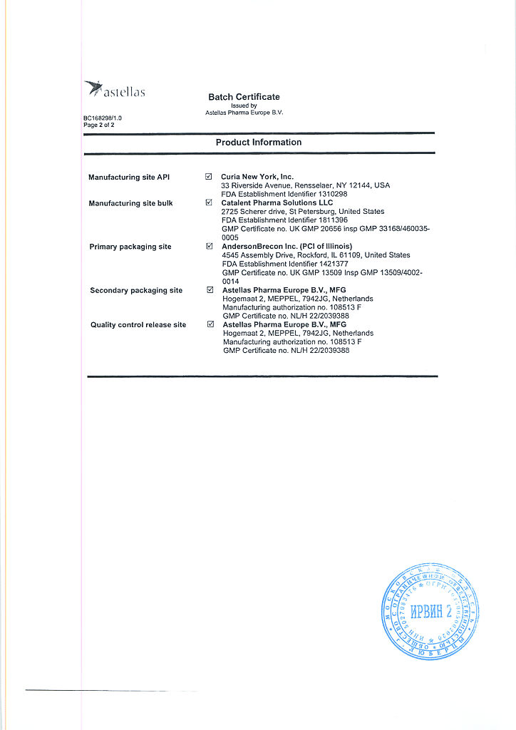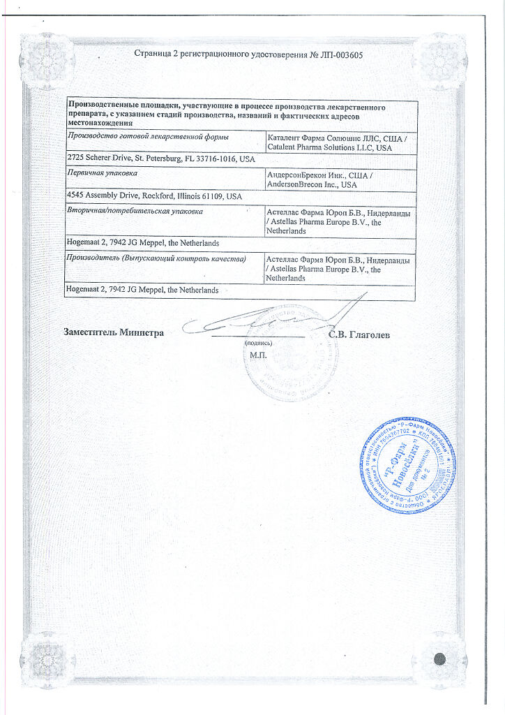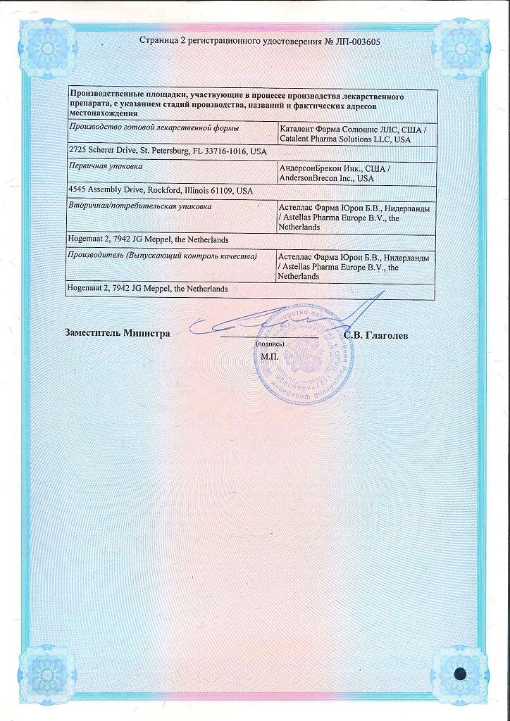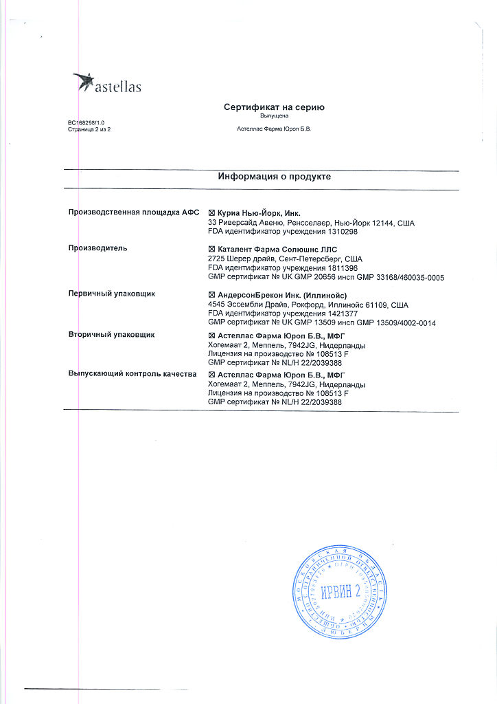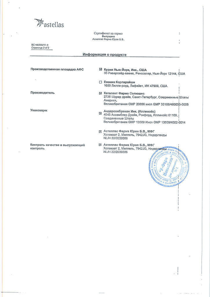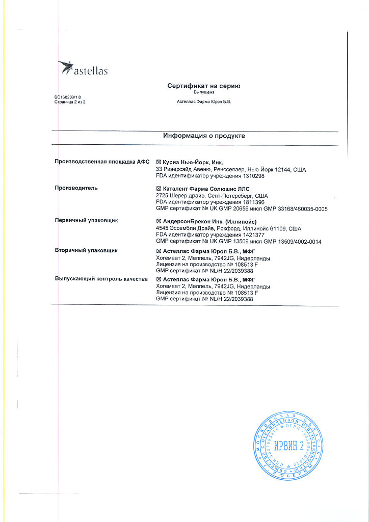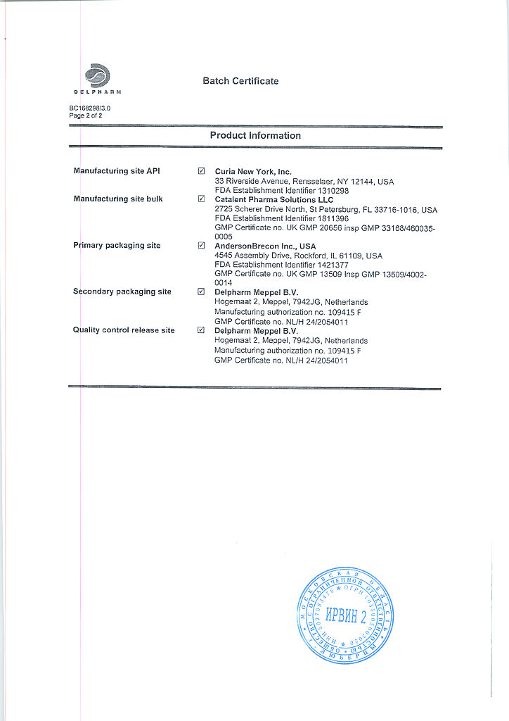 Производитель: Каталент Фарма Солюшнз ЛЛС, США