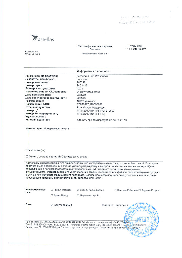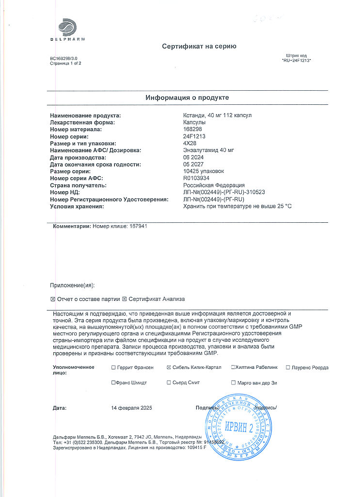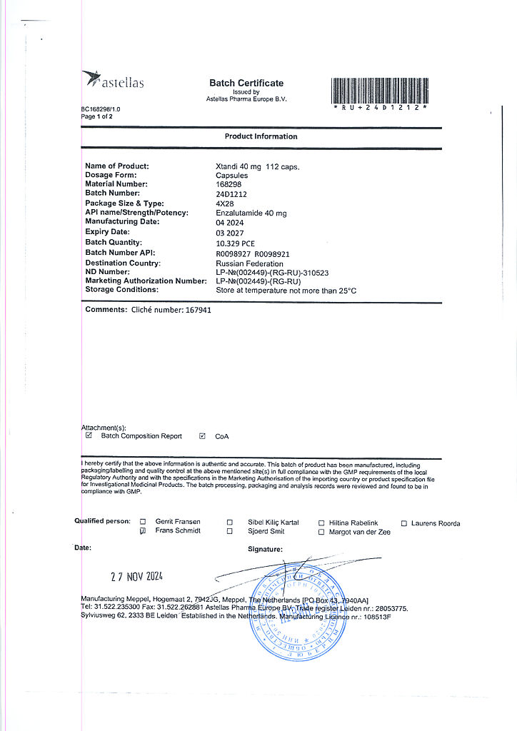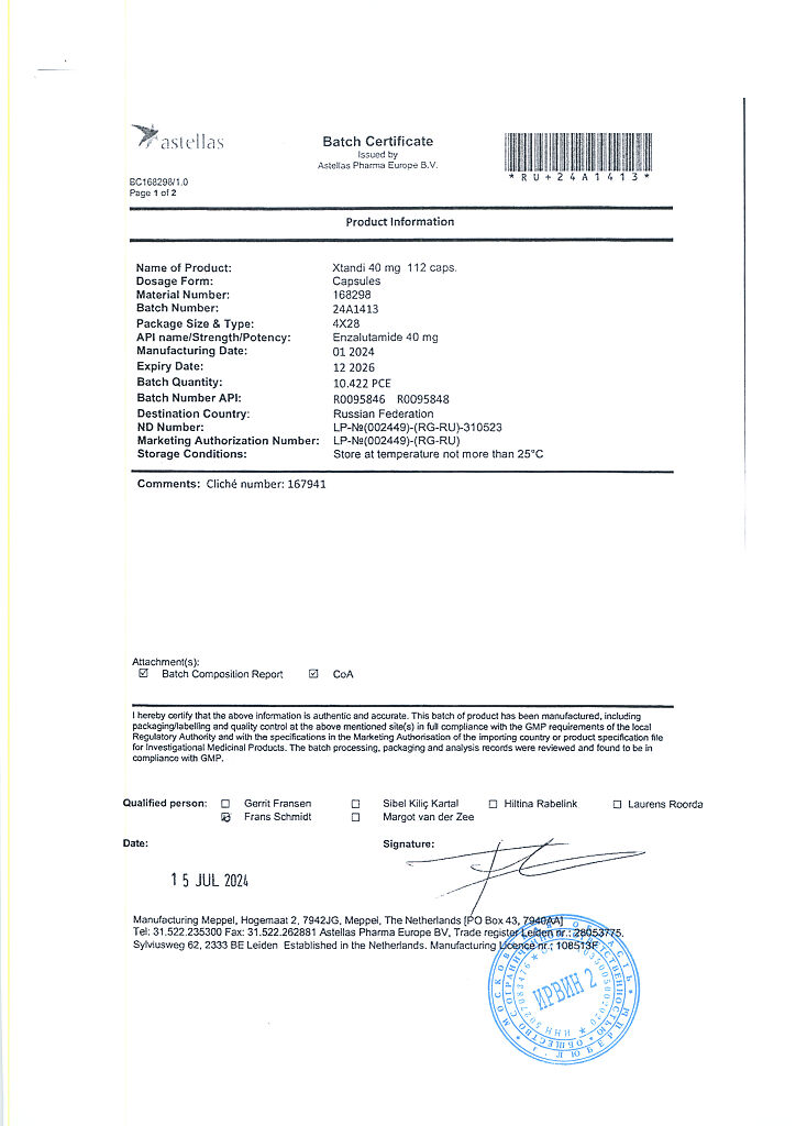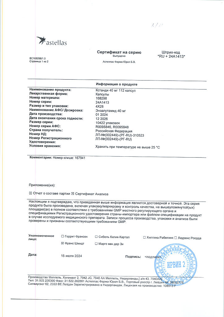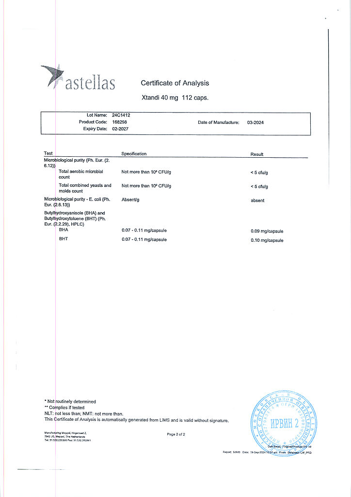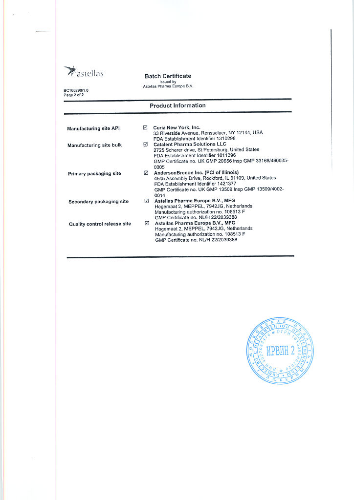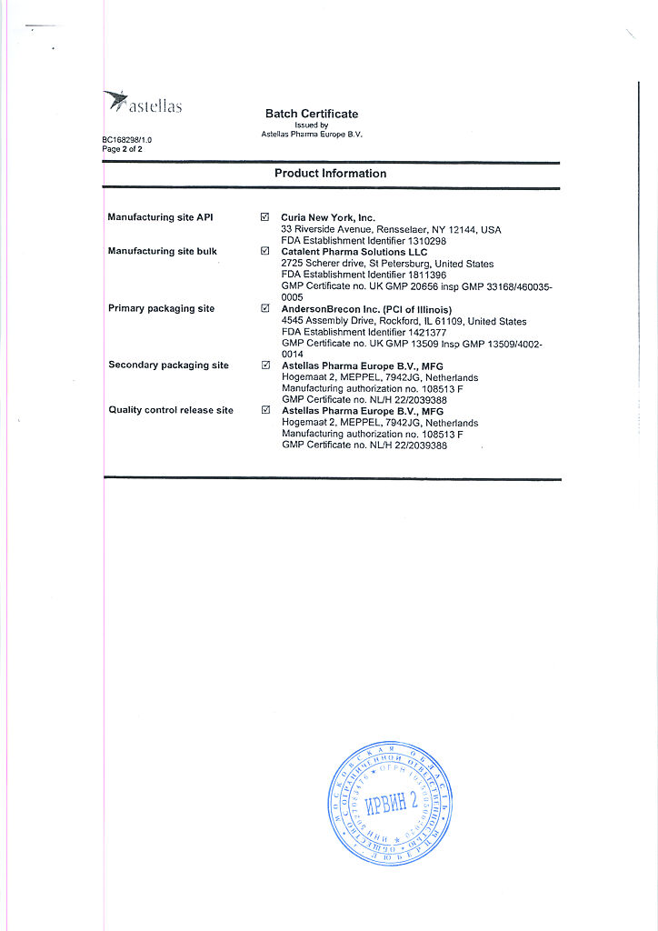 Производитель: Каталент Фарма Солюшнз ЛЛС, США