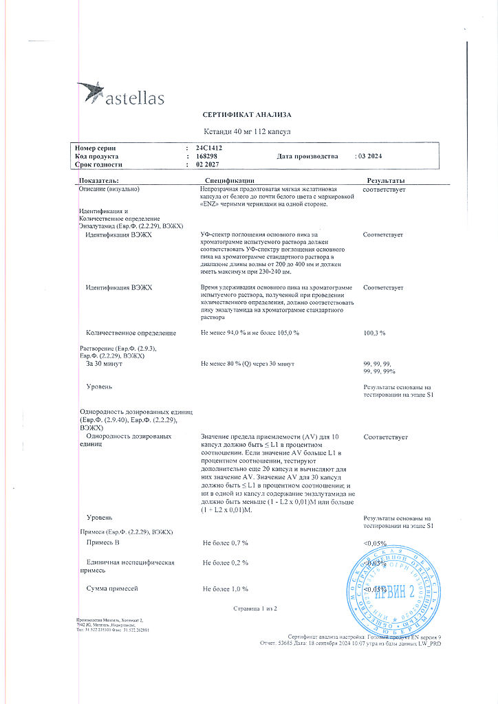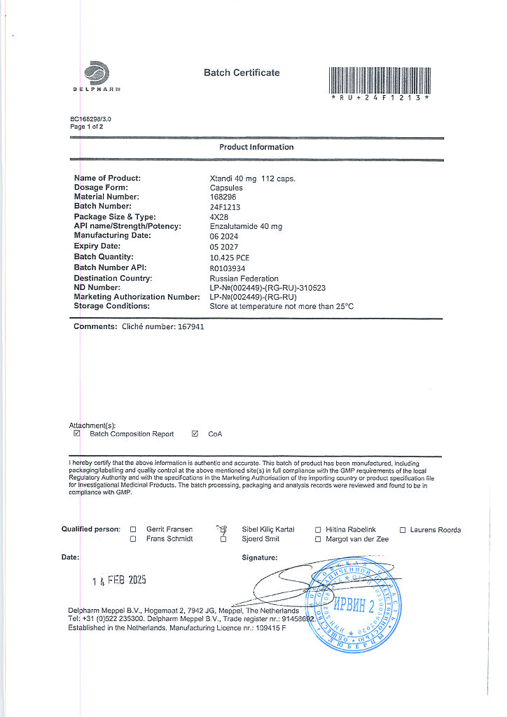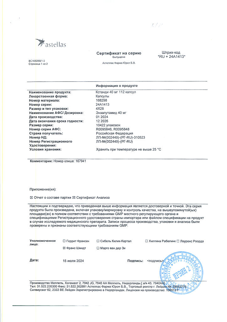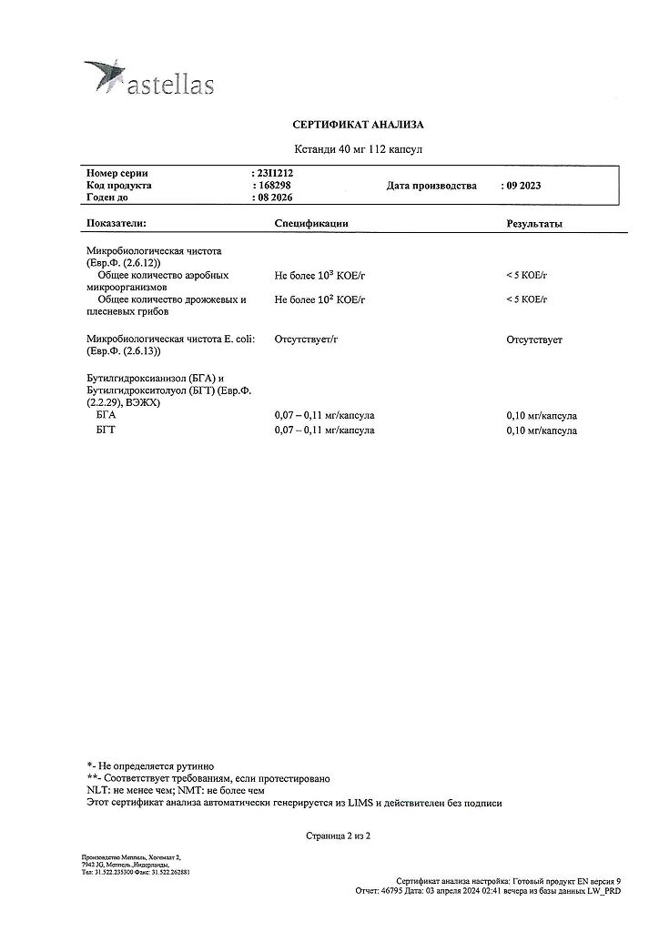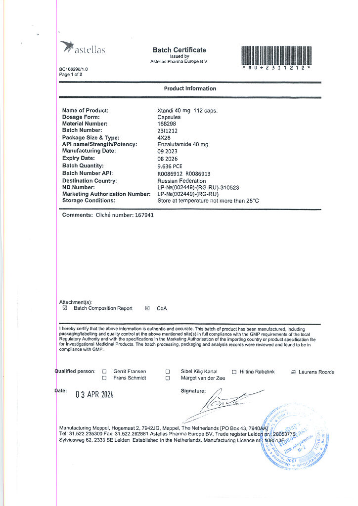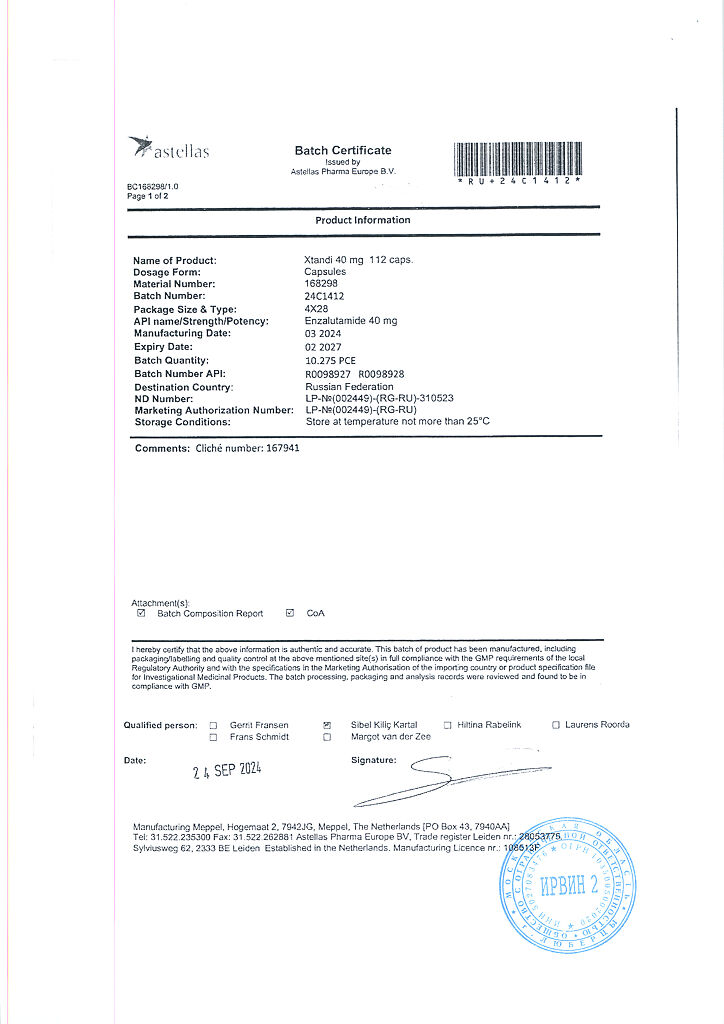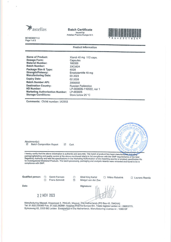 Производитель: Каталент Фарма Солюшнз ЛЛС, США