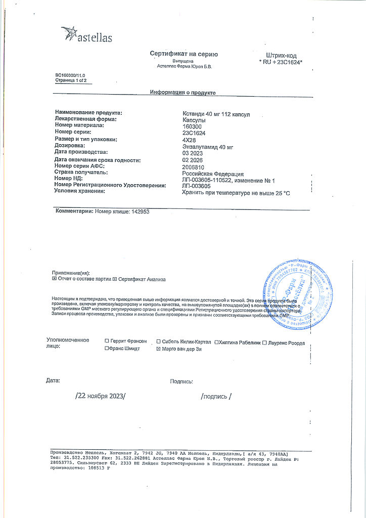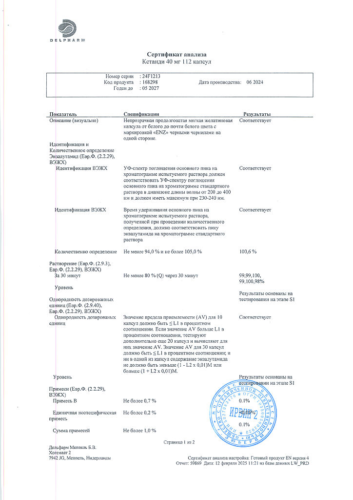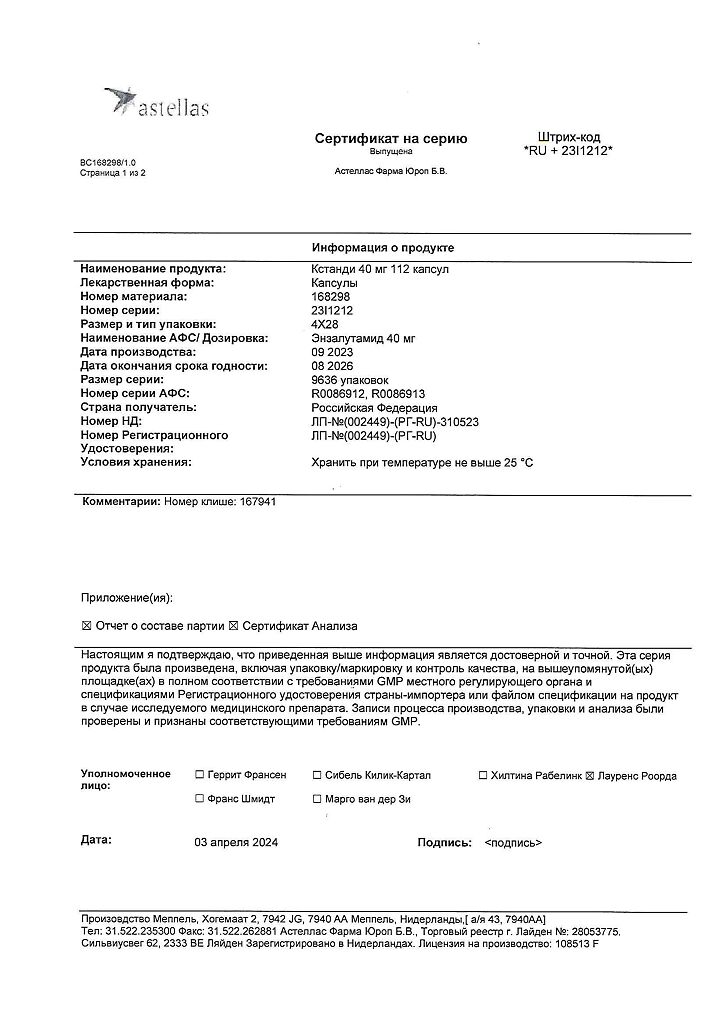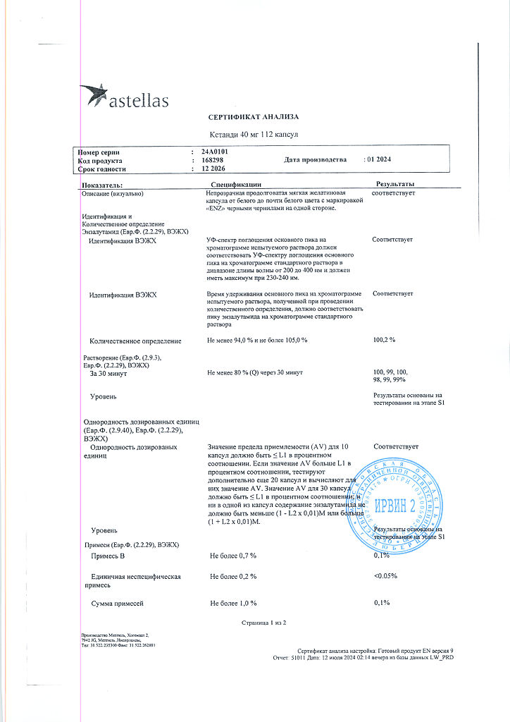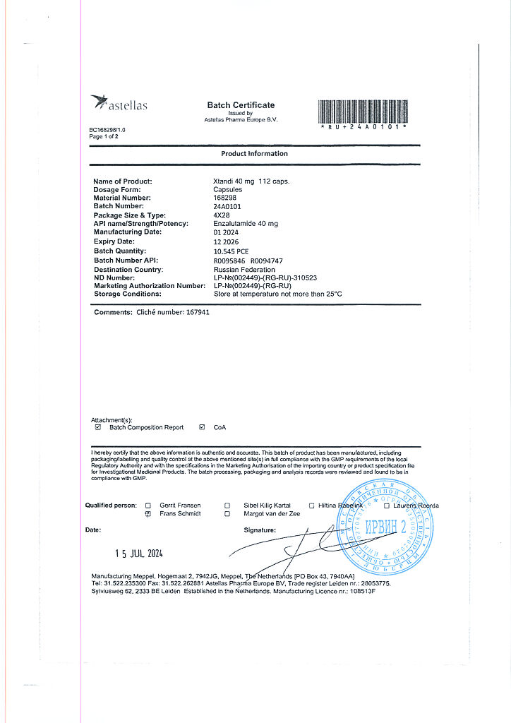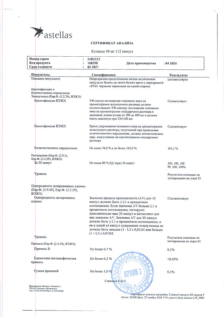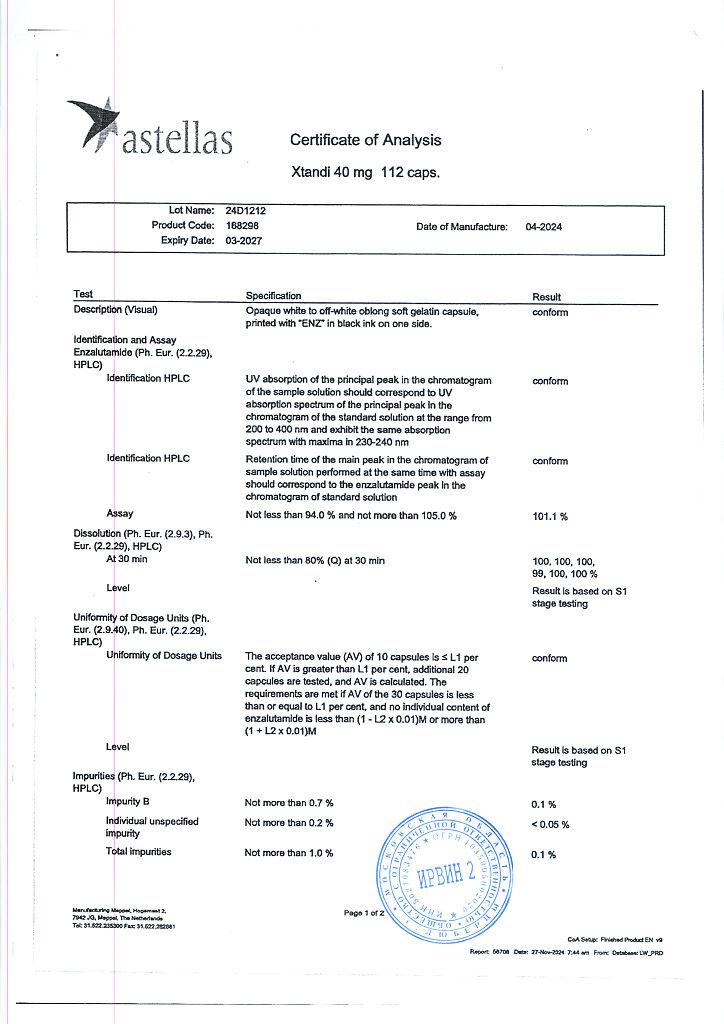 Производитель: Каталент Фарма Солюшнз ЛЛС, США