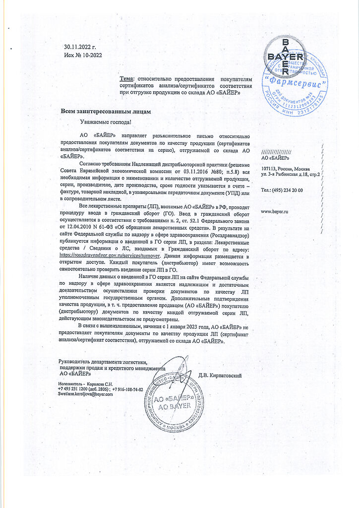 Как и в случае интравитреального введения других анти-VEGF препаратов при ВМД, ОЦВС, ОВВС и ДМО, следует принять во внимание следующее: