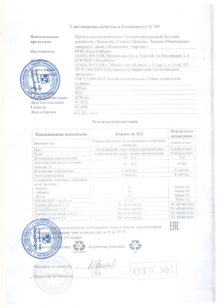 Документы Лошадиное здоровье бальзам-реноватор для тела 125 мл 1 шт