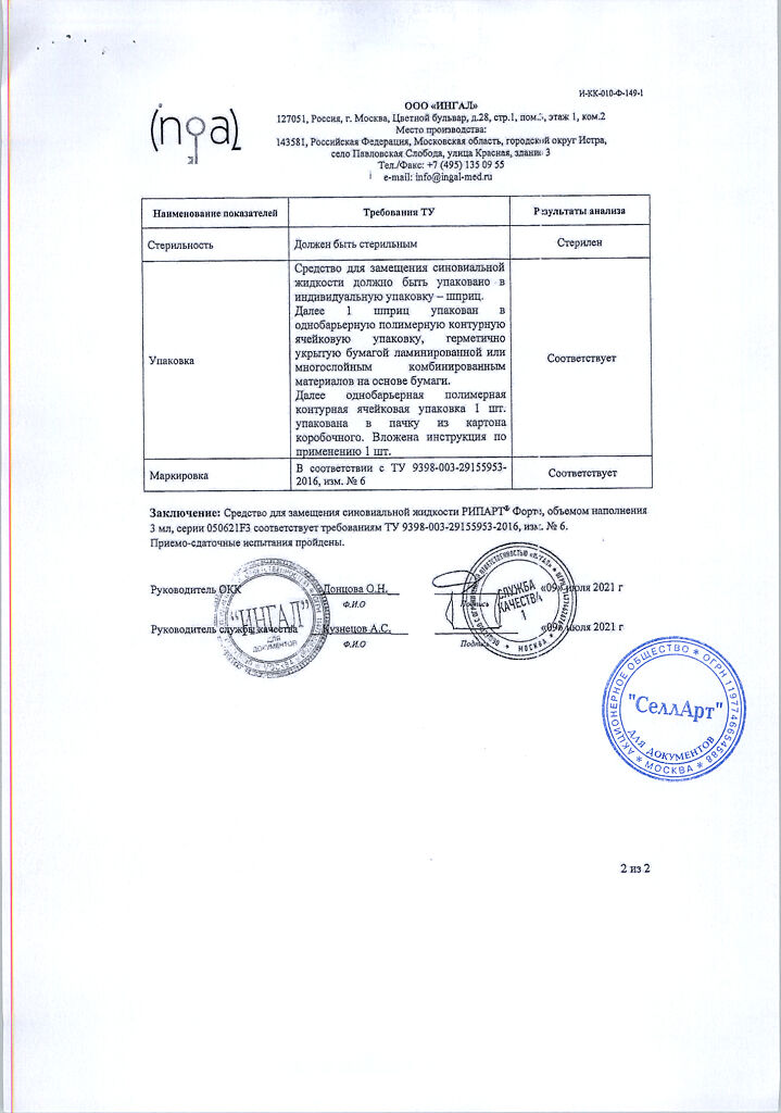 Документы Рипарт Форте средство для замещения синовиальной жидкости 15мг/мл шприц 3 мл 1 шт