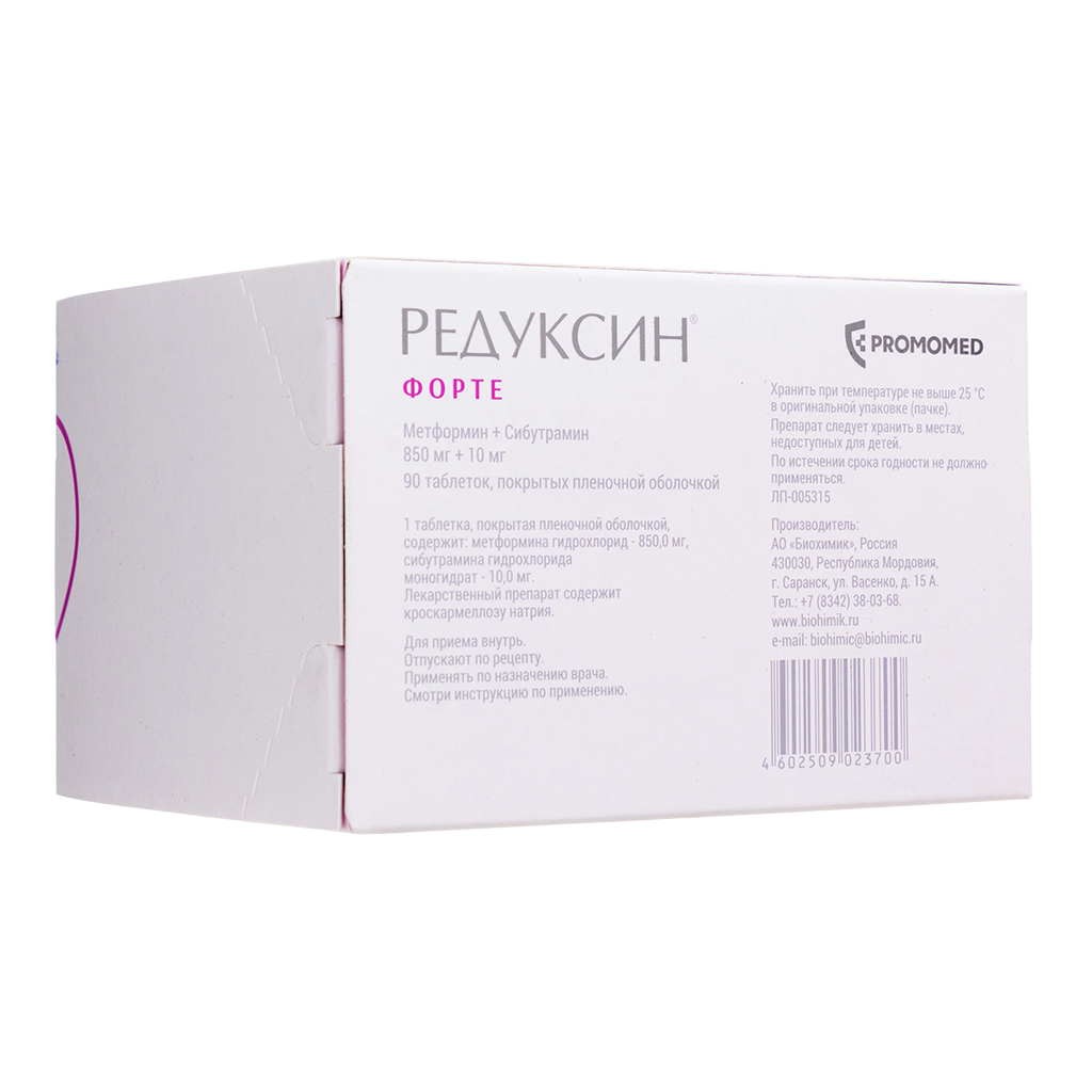 • 📒 Подробная инструкция по применению Редуксин Форте таблетки покрыт.плен.об. 850 мг+10 мг 90 шт