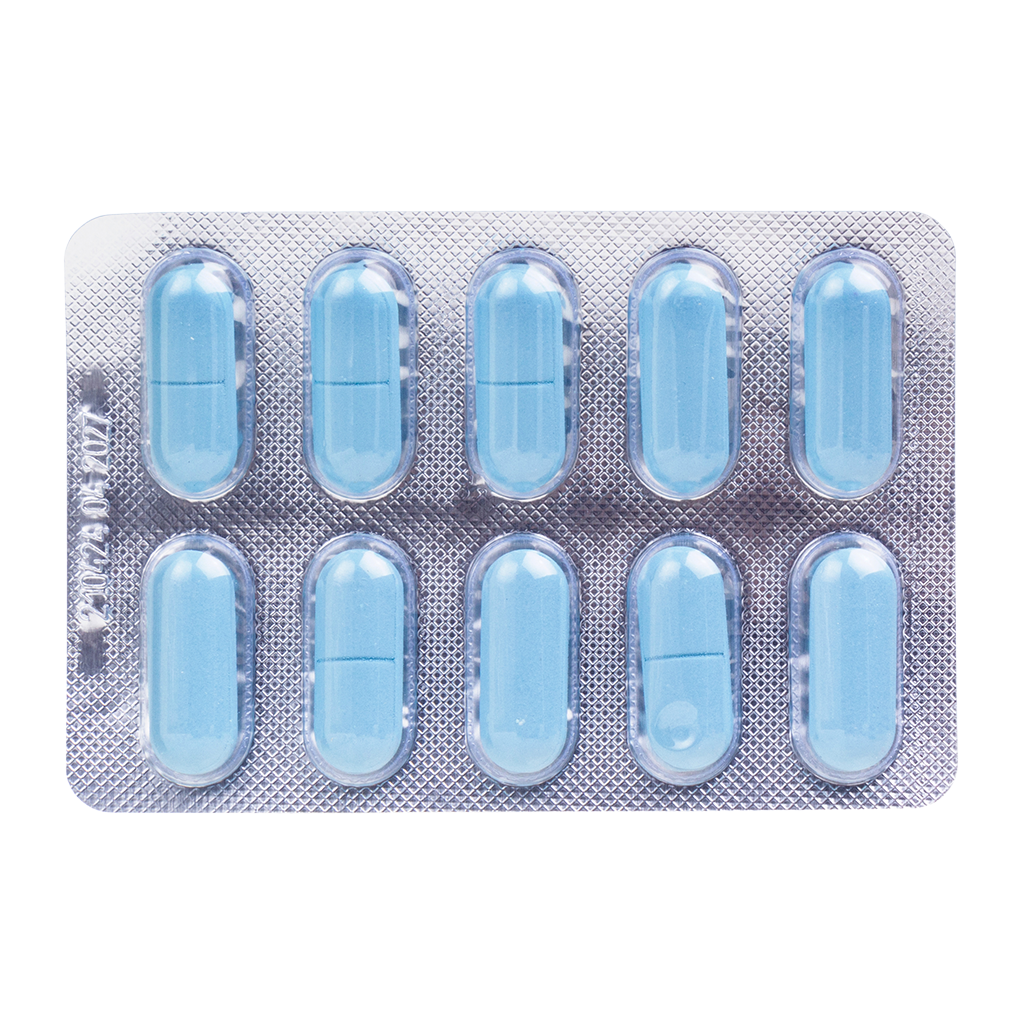 Таблетки овальные двояковыпуклые с разделительной риской с одной стороны, покрытые пленочной оболочкой голубого цвета. На поперечном разрезе ядро почти белого цвета.
