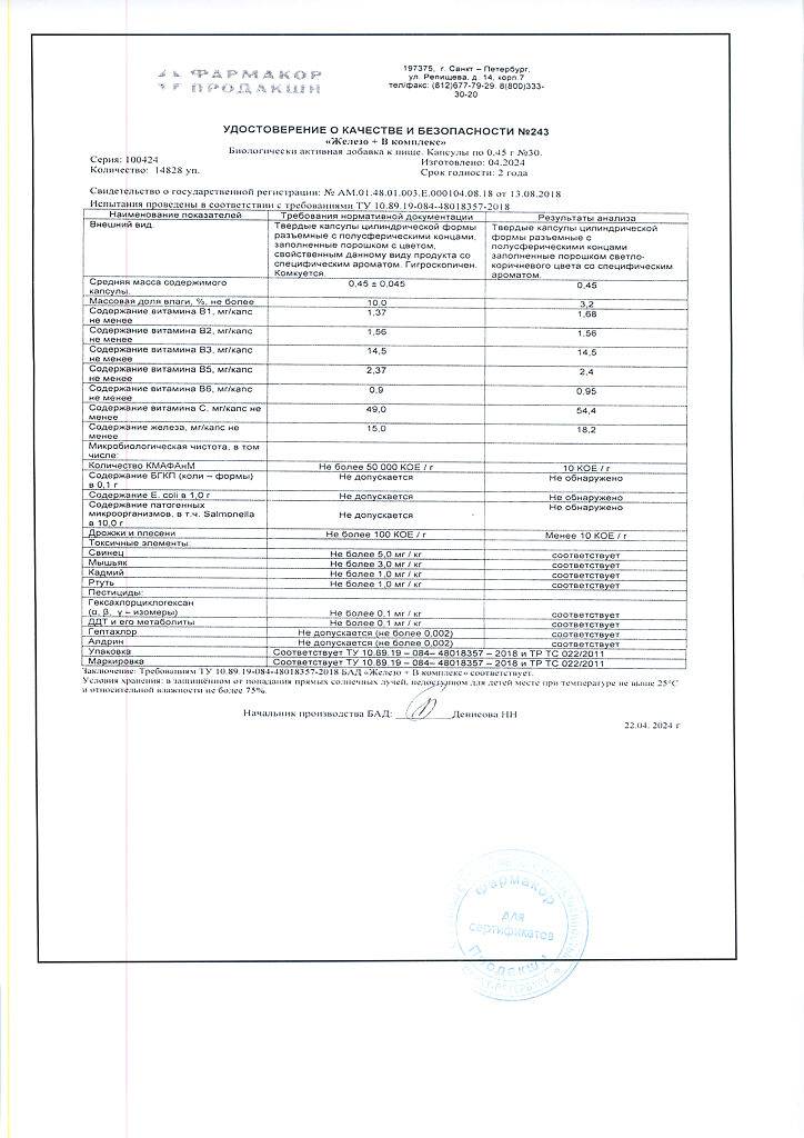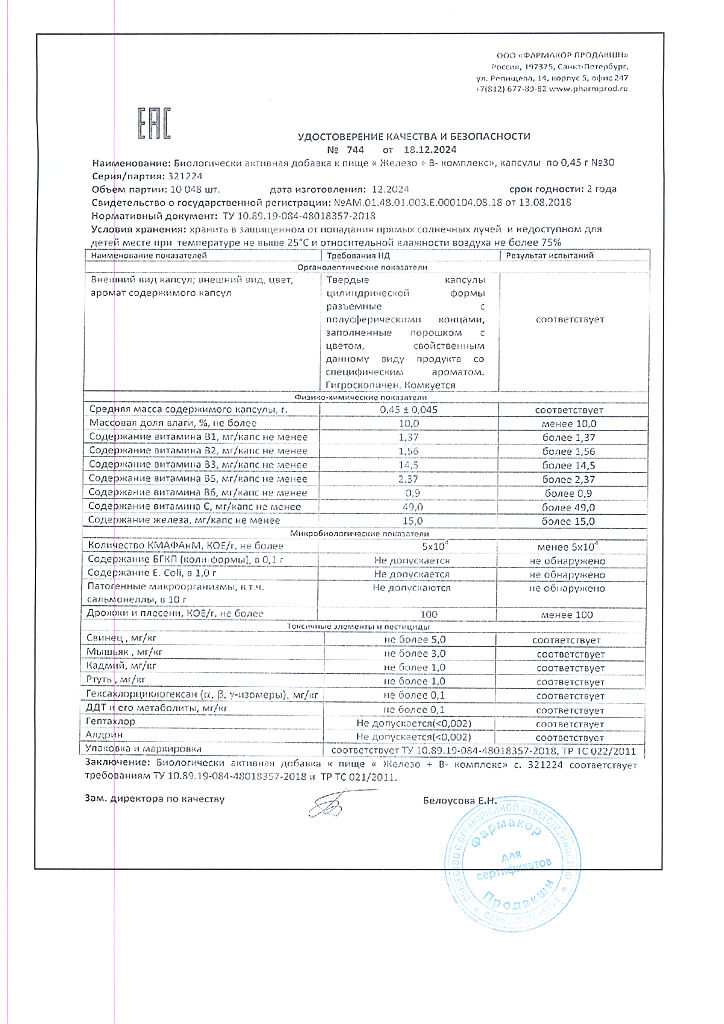 Документы Железо+В-комплекс капсулы по 0,45 г 30 шт