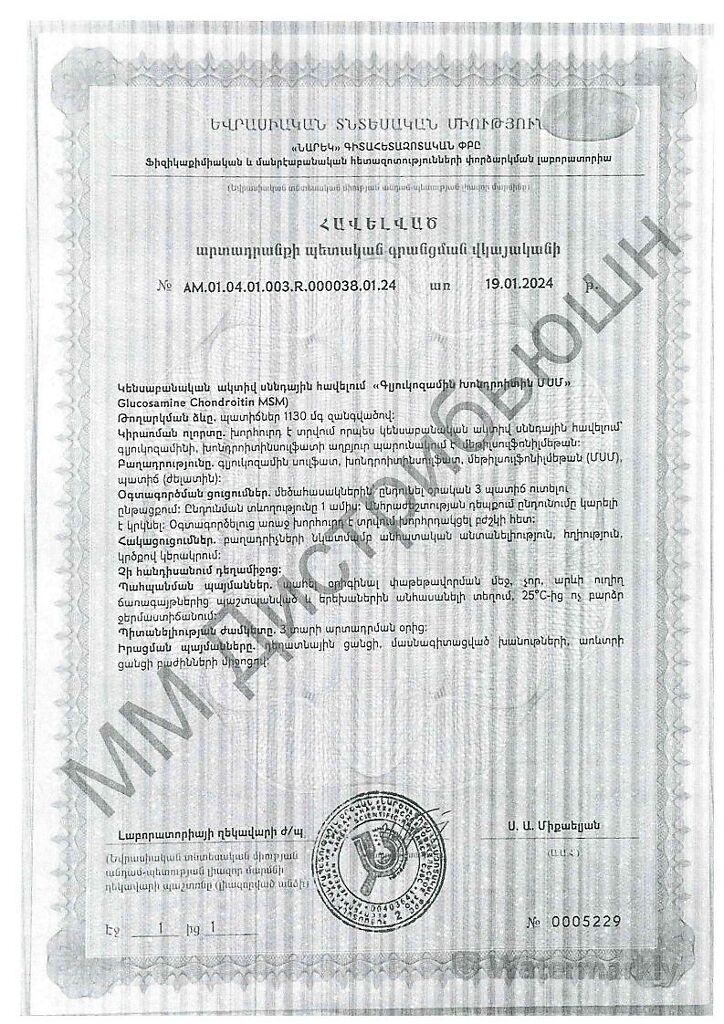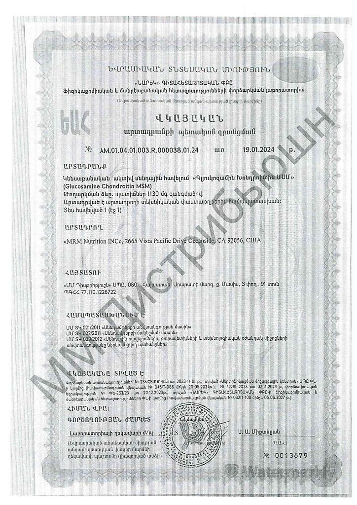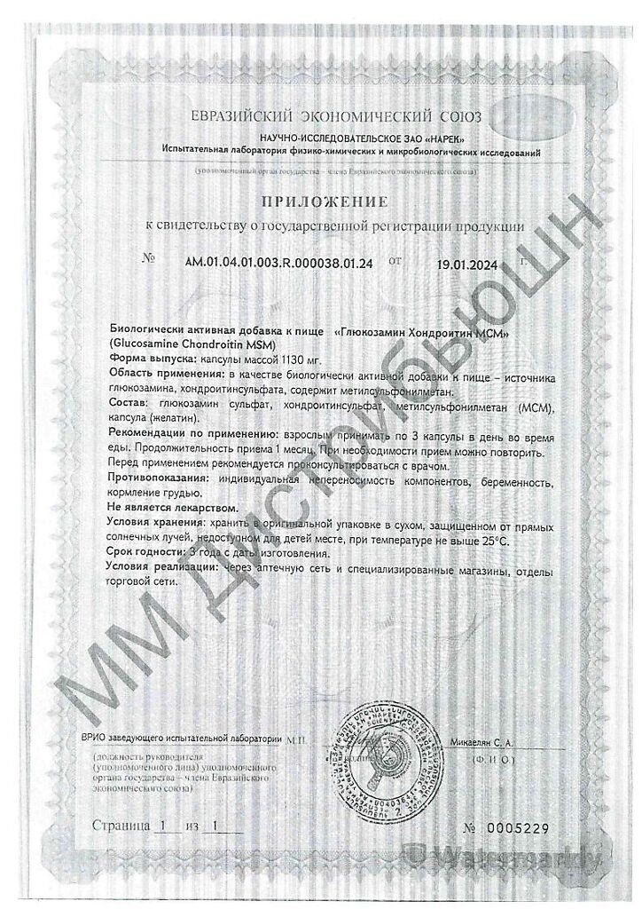 Документы MRM Глюкозамин хондроитин с МСМ / Glucosamine Chondroitin MSM капсулы массой 1130 мг 90 шт