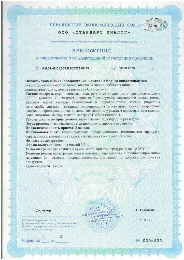 Содержание в суточной дозе (1-8 леденцов по 3,3 г) |