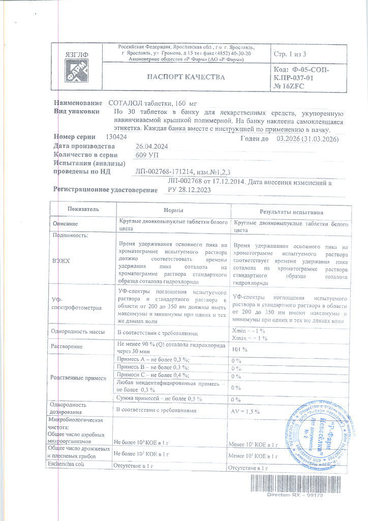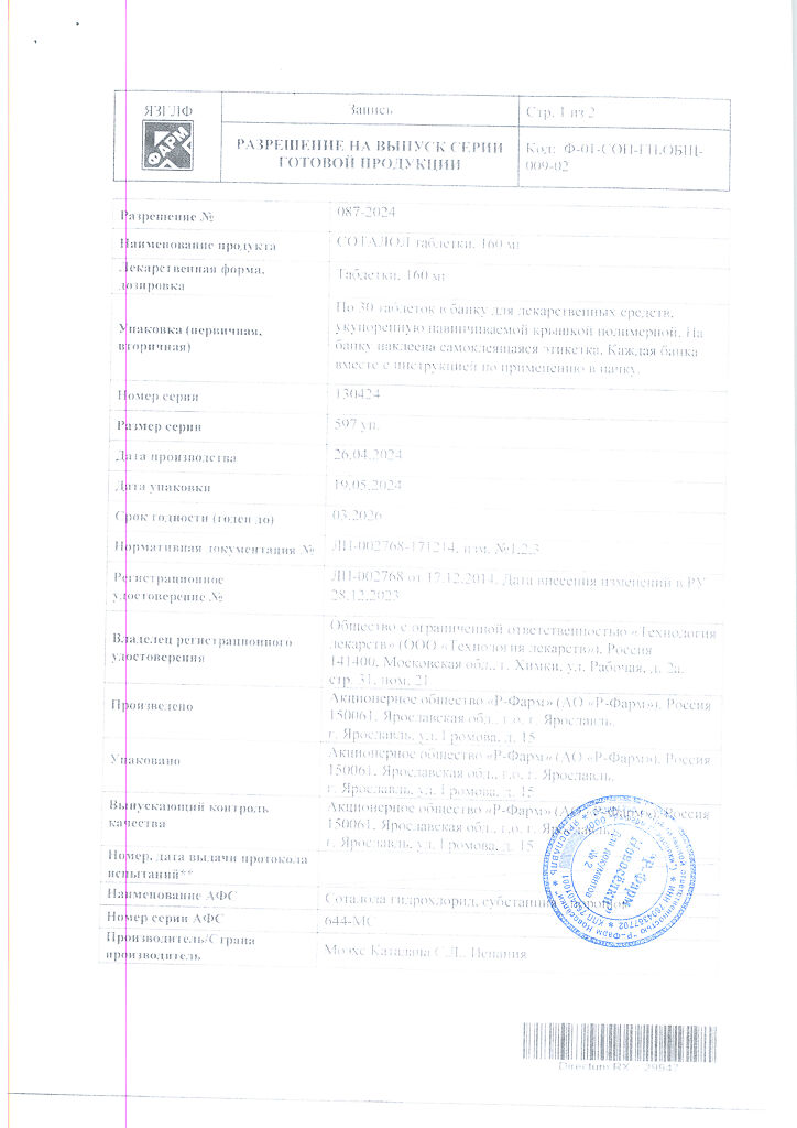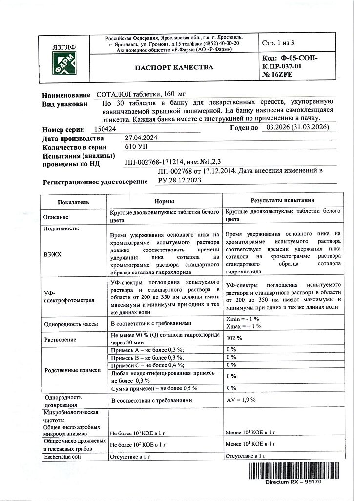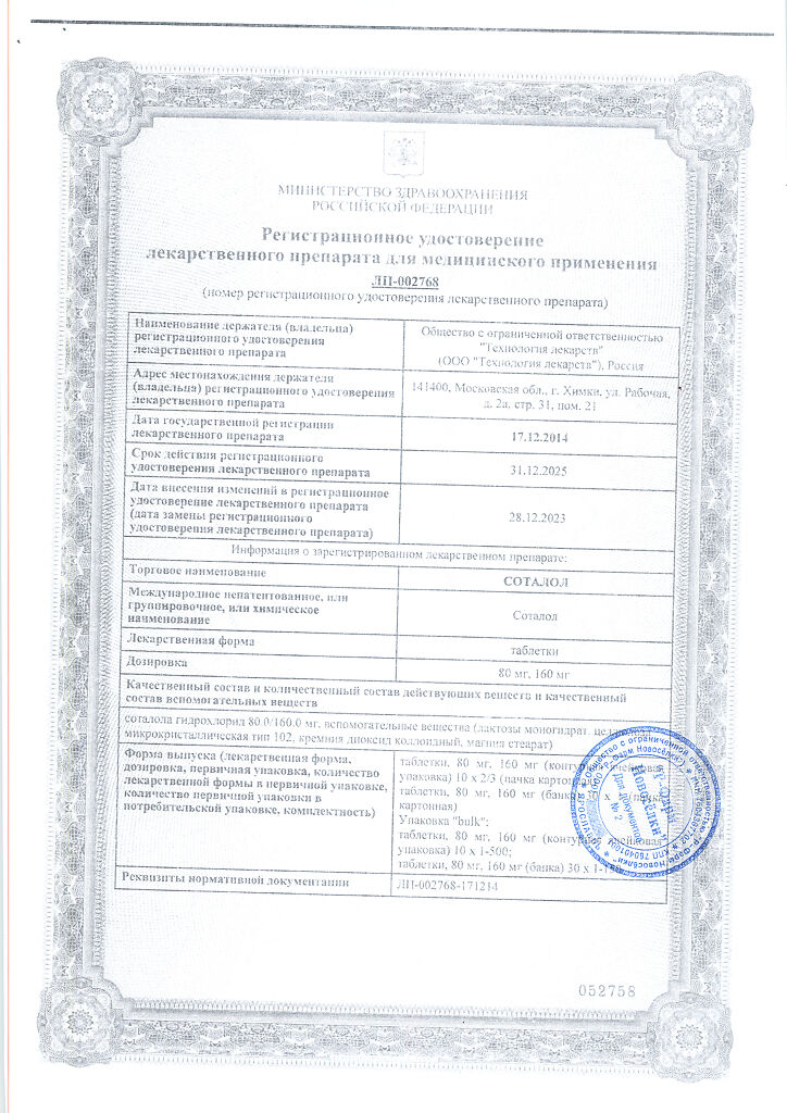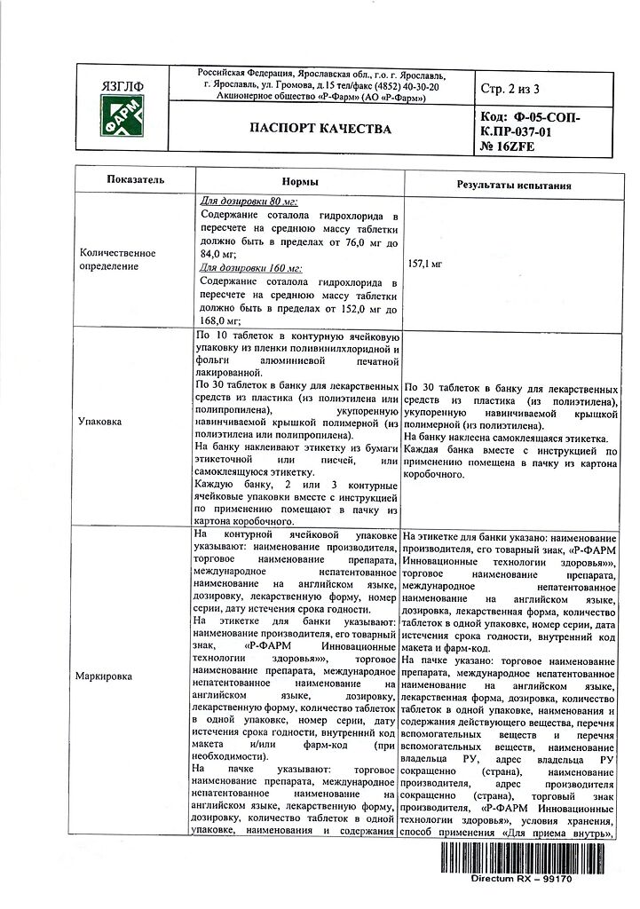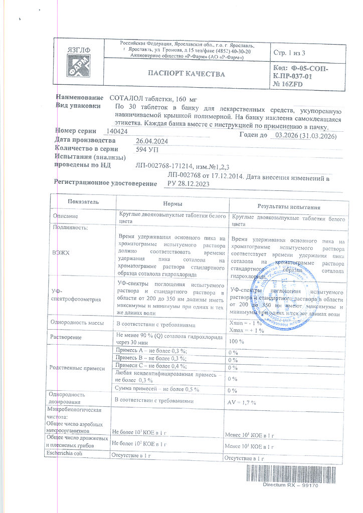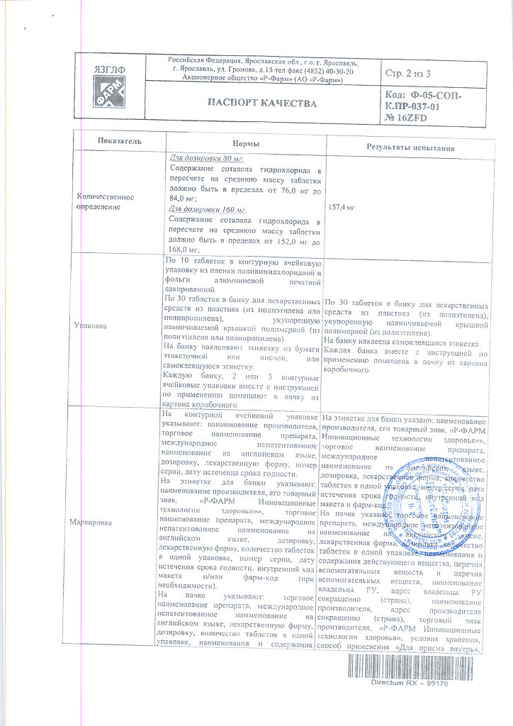 • 📒 Подробная инструкция по применению Соталол таблетки 160 мг банка 30 шт