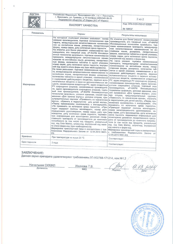 Лактозы моногидрат 97,0 мг 194,0 мг