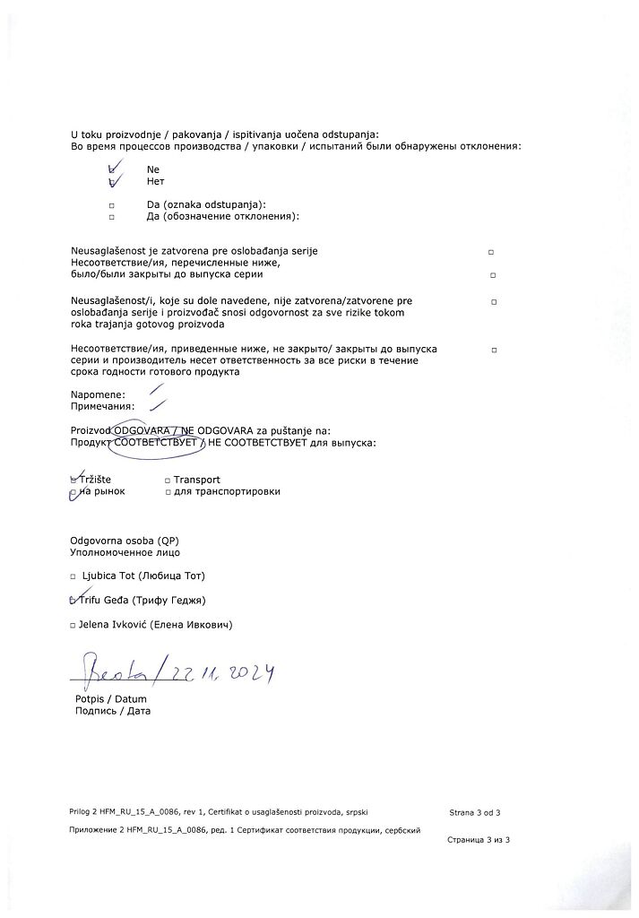 Для предотвращения искажения результатов кожных скарификационных проб на аллергены препарат необходимо отменить за 72 ч до проведения аллергологического тестирования.