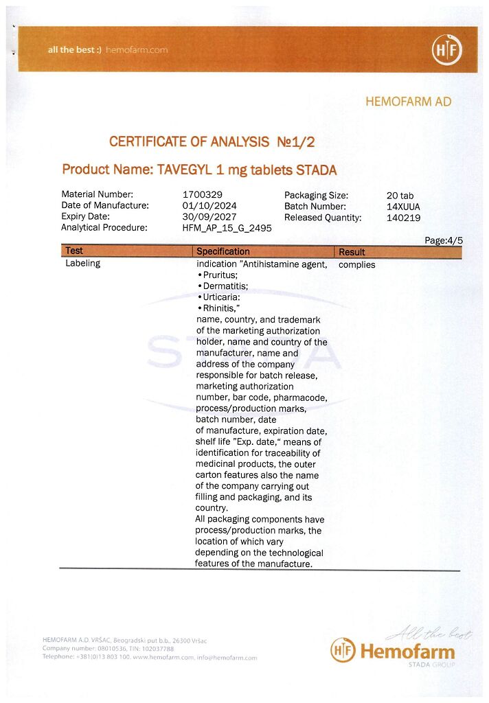 Клемастин обладает незначительным седативным эффектом (от слабого до умеренного по интенсивности), поэтому лицам, принимающим Тавегил, рекомендуется воздерживаться от вождения транспортных средств, работы с механизмами, а также от других видов деятельности, требующих повышенной концентрации внимания и быстроты психомоторных реакций.