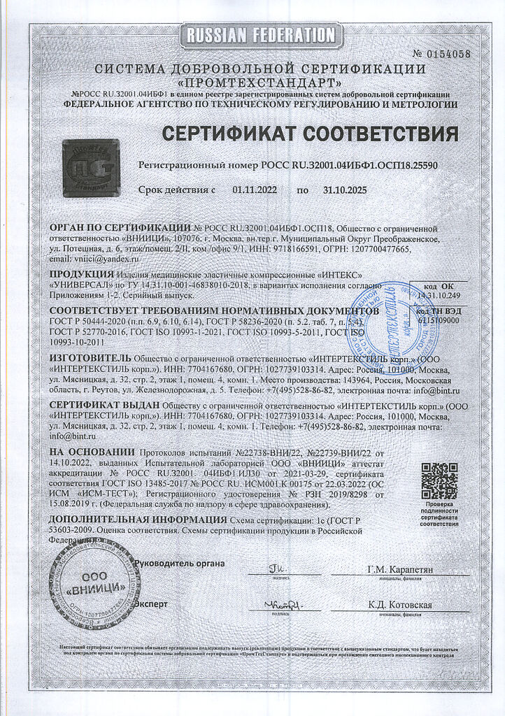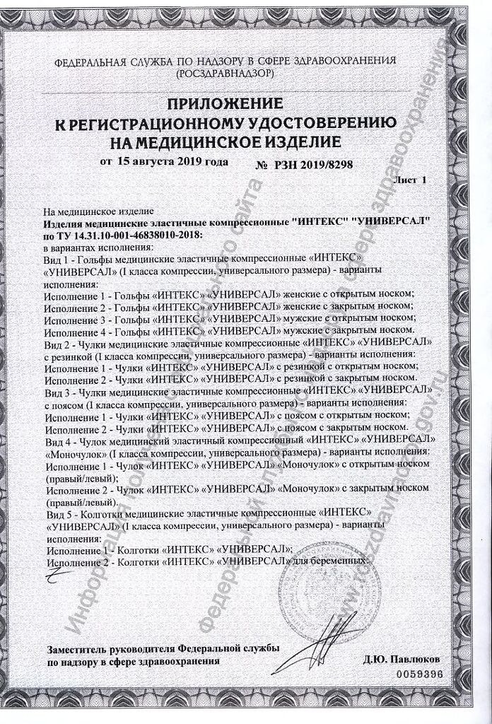 Документы Med Expert Гольфы медицинские эластичные компрессионные ИНТЕКС УНИВЕРСАЛ мужские с закрытым носком I кл компрессии р S-XL черные 1 уп