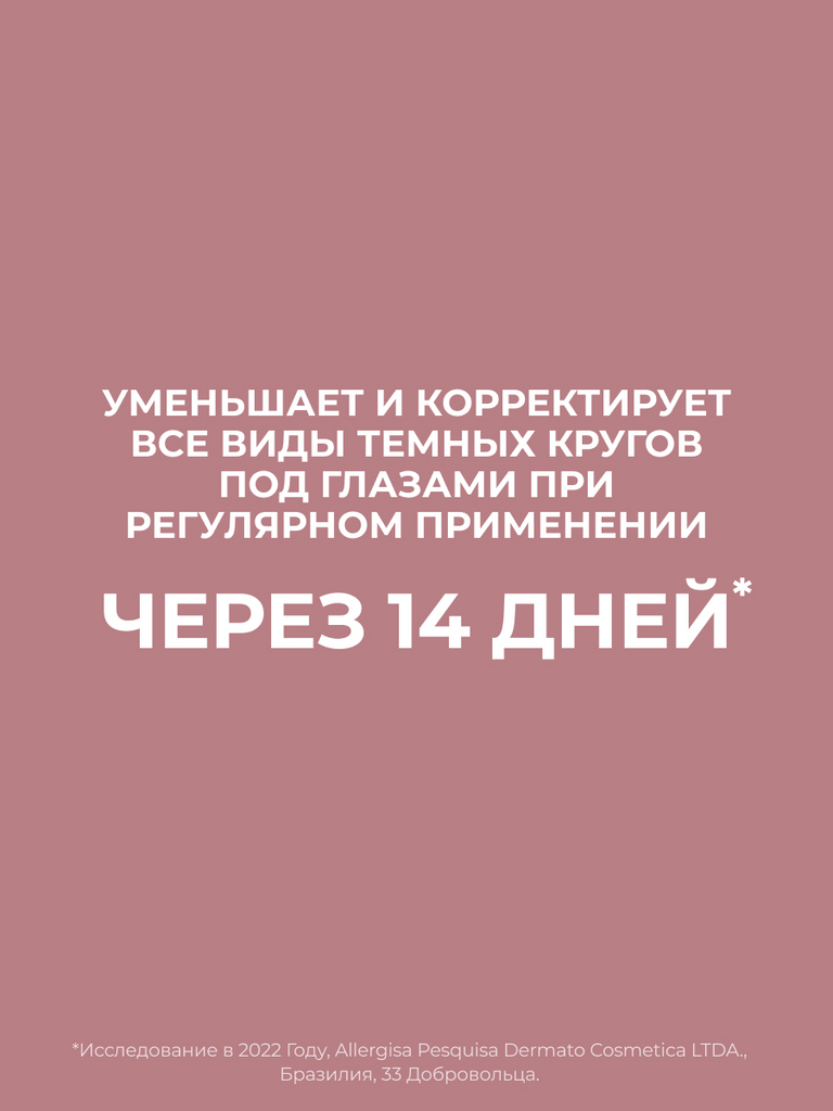 •    Уменьшает и корректирует все виды темных кругов под глазами.