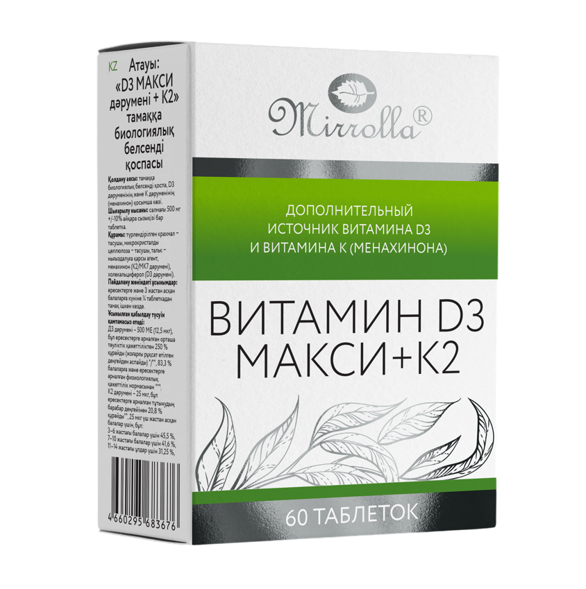 Mirrolla Витамин D3 МАКСИ+К2 таблетки массой 500 мг 60 шт