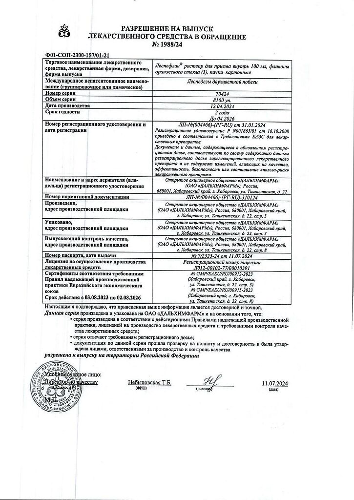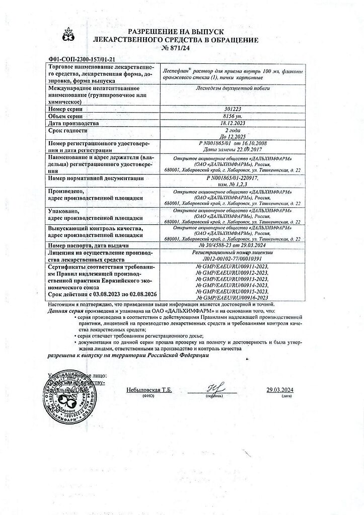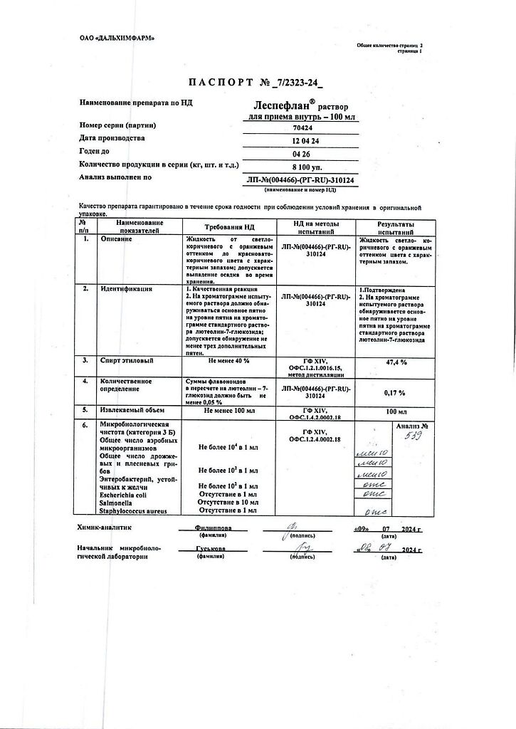 Документы Леспефлан раствор для приема внутрь 100 мл 1 шт