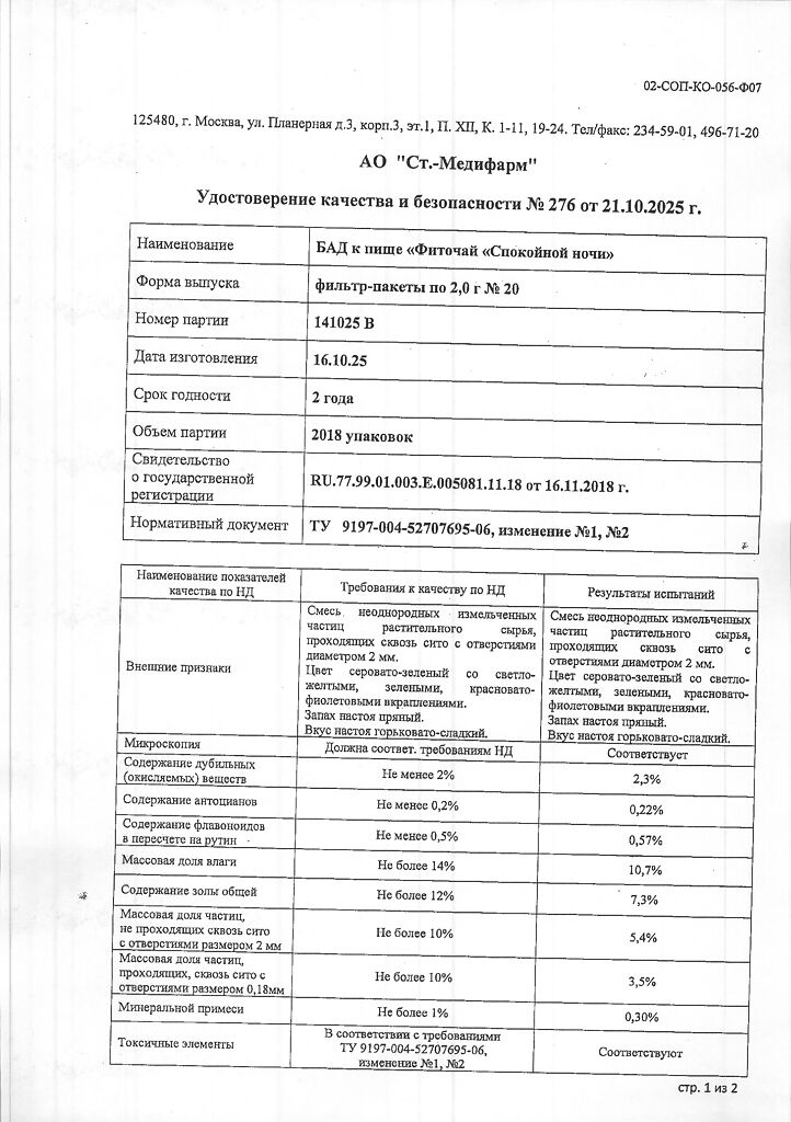 АО «Ст.-Медифарм», 125480, г. Москва, ул. Планерная д.3, корп. 3, эт. 1, П. ХII, К.1-11, 19-24, Российская Федерация.