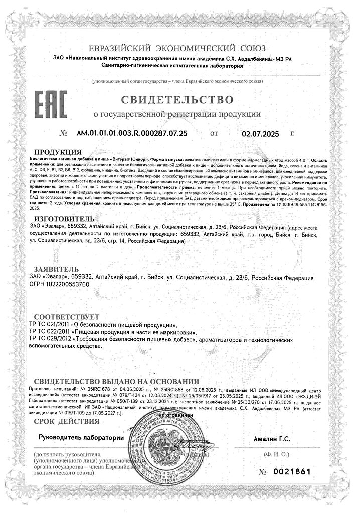 ЗАО «Эвалар», Россия, Алтайский край, 659332, г. Бийск, ул. Социалистическая, 23/6, www.evalar.ru