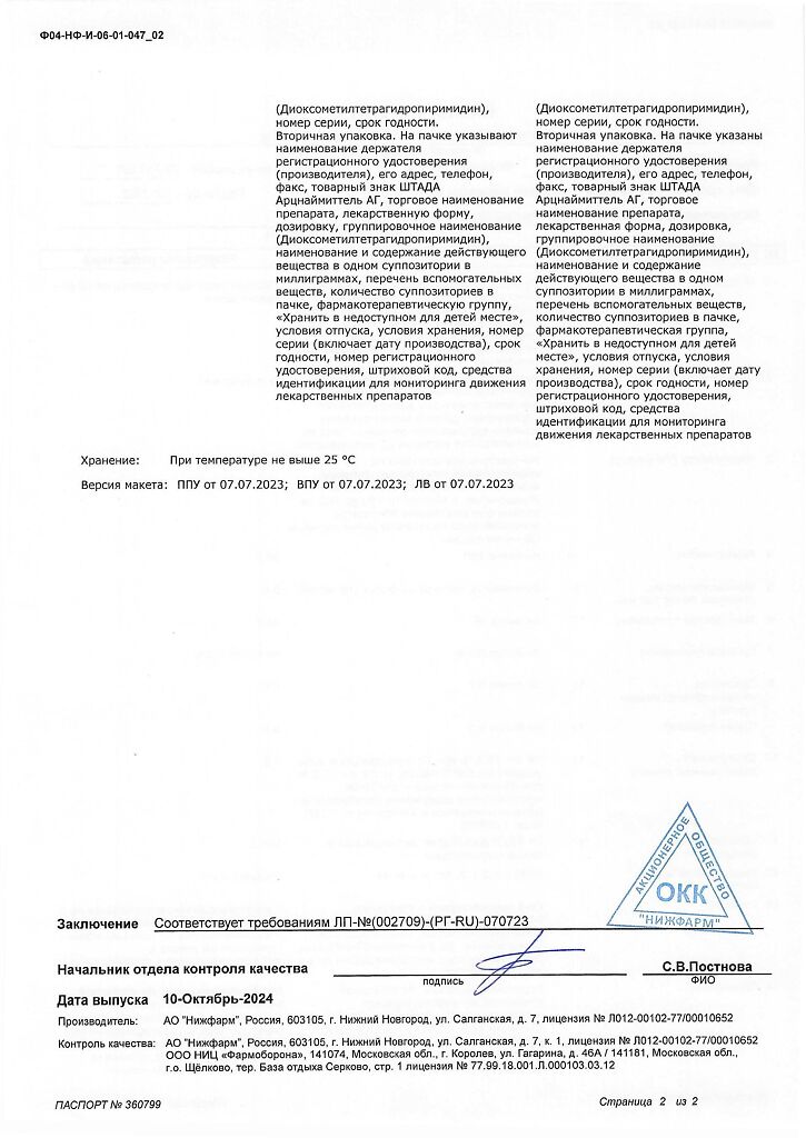 Действующее вещество: Диоксометилтетрагидропиримидин