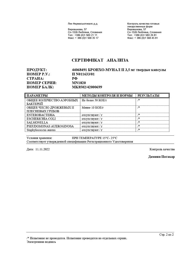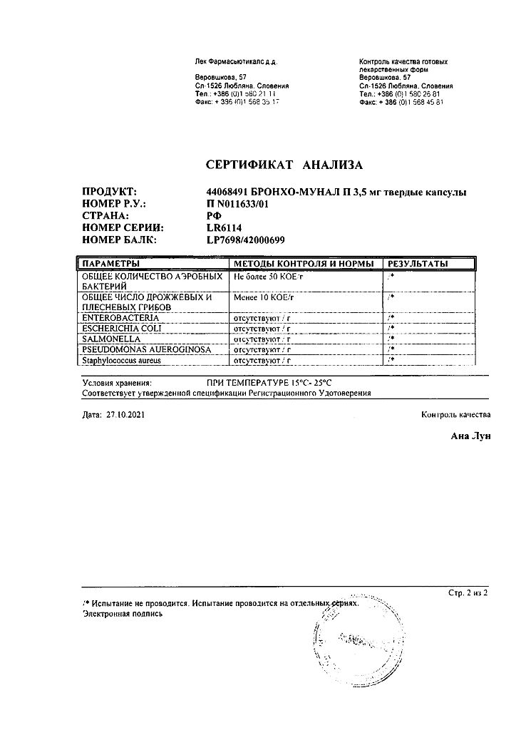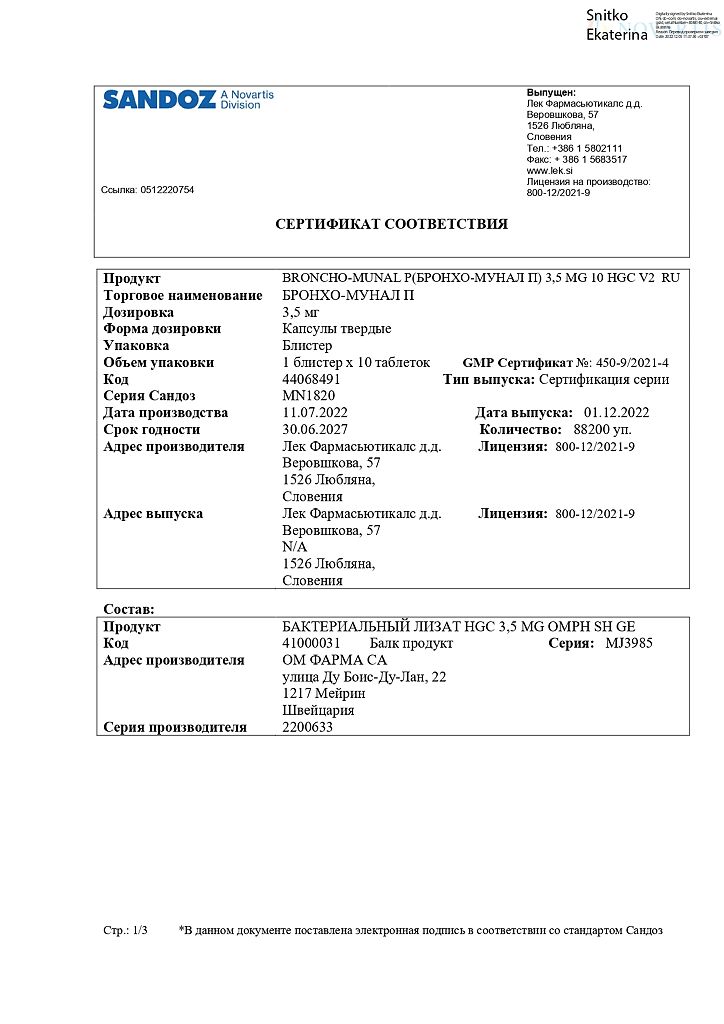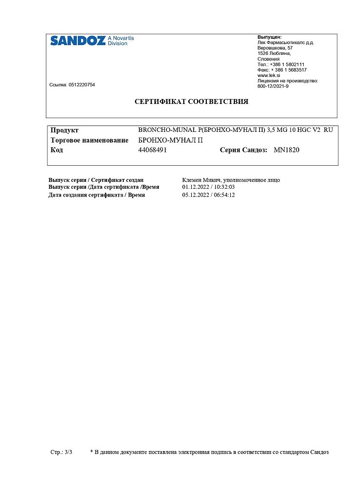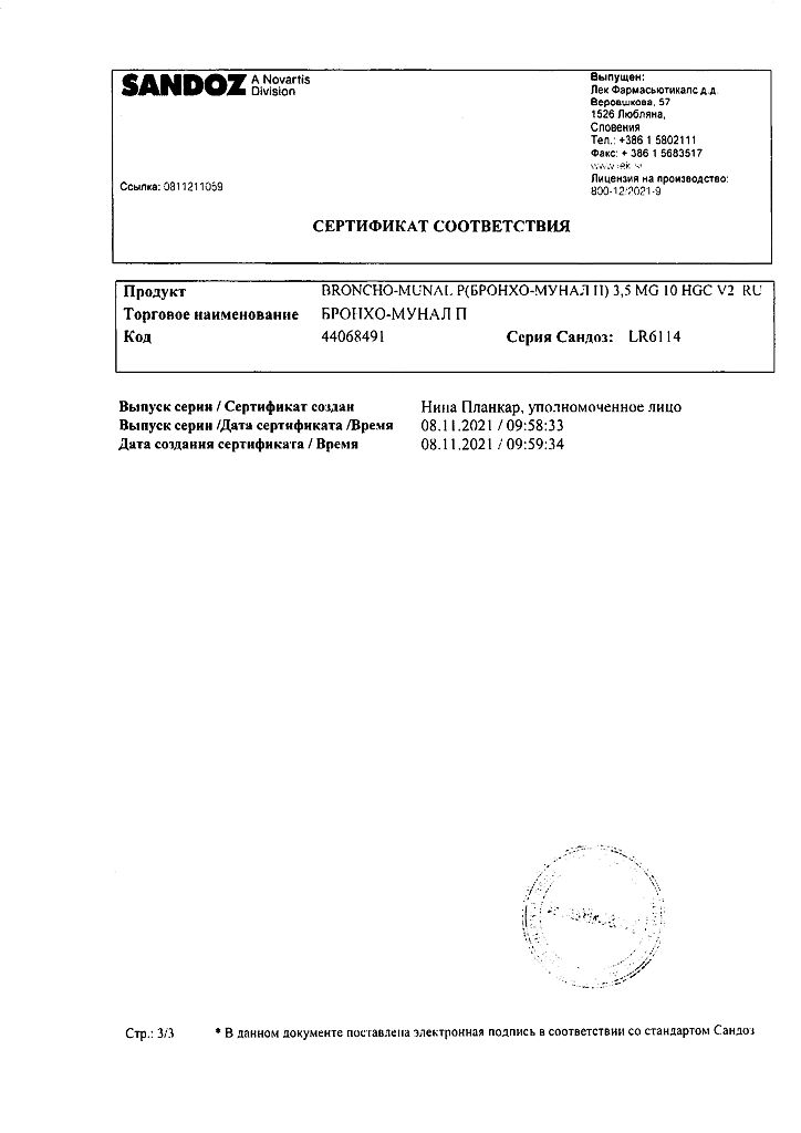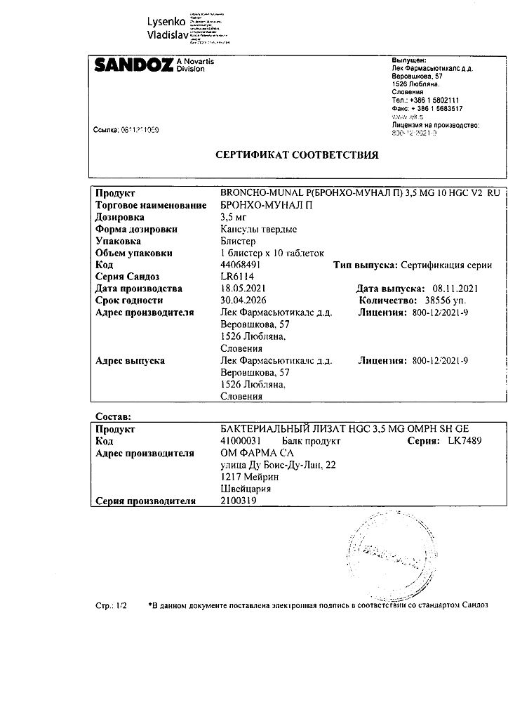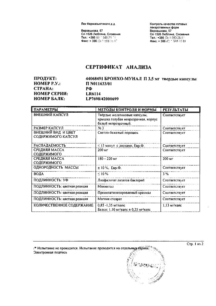 Документы Бронхо-мунал П капсулы 3,5 мг 10 шт