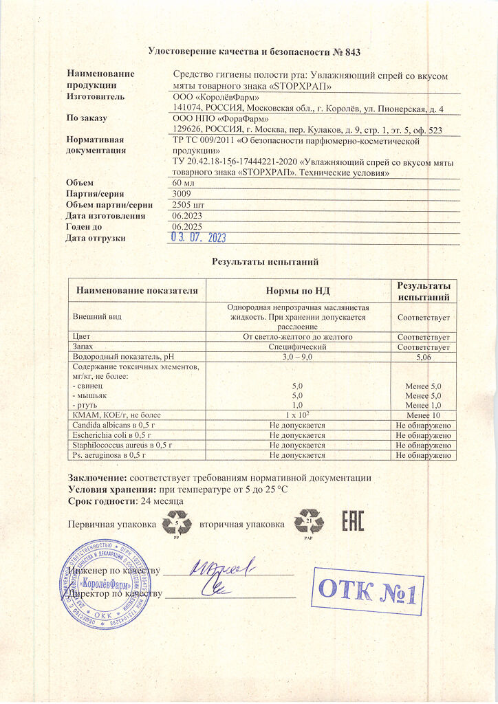 STOP ХРАП Спрей увлажняющий со вкусом мяты 60 мл 1 шт