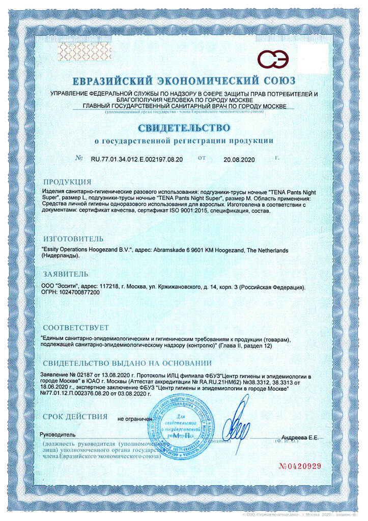 Документы ТЕНА Пантс размер M