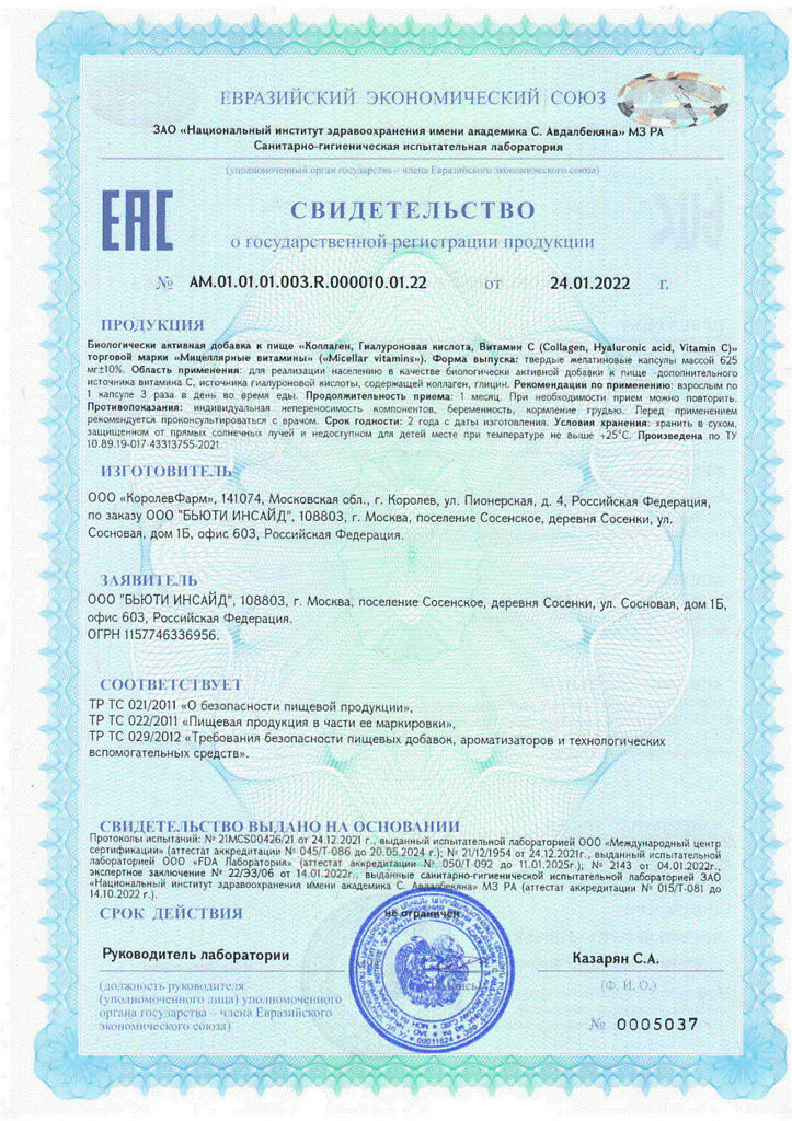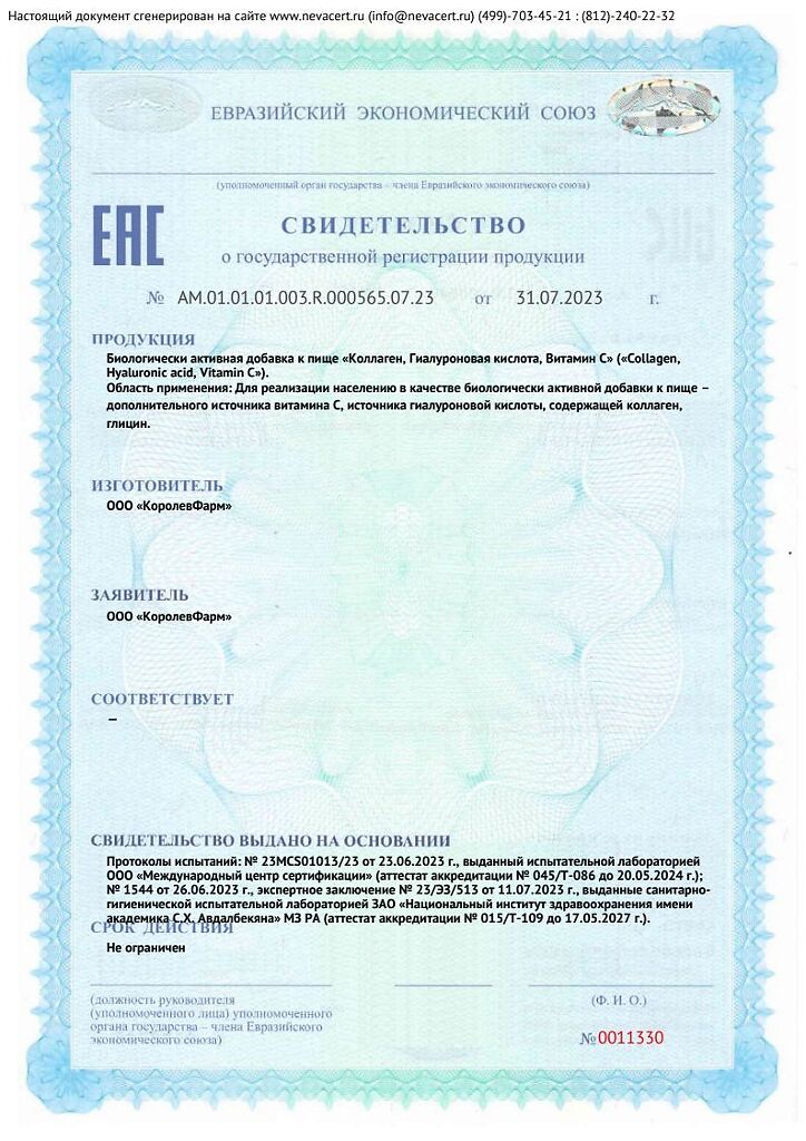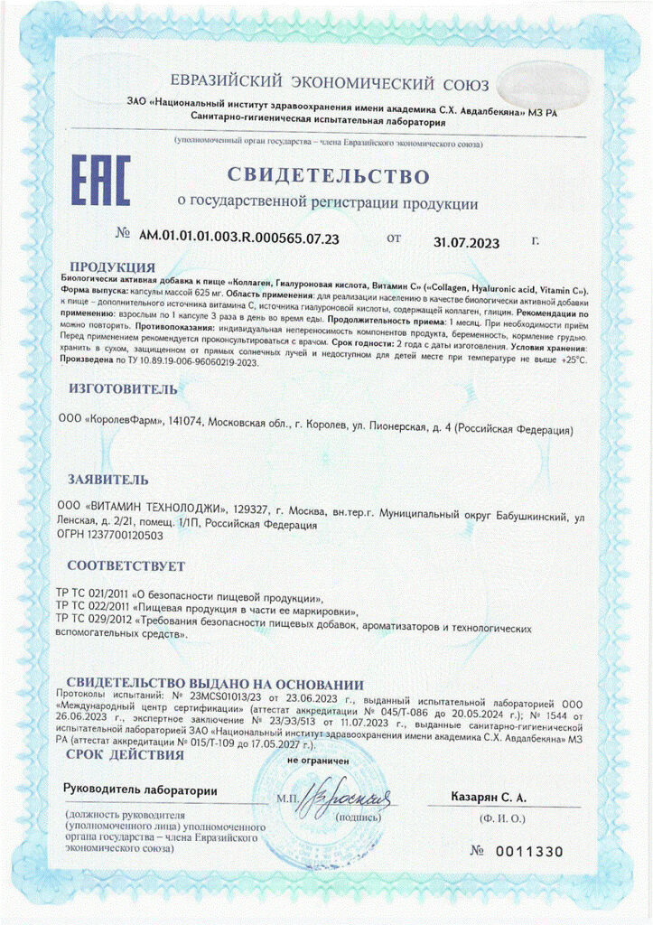 Коллаген, Гиалуроновая кислота, Витамин С (Collagen, Hyaluronic acid, Vitamin C) капсулы массой 625 мг 30 шт
