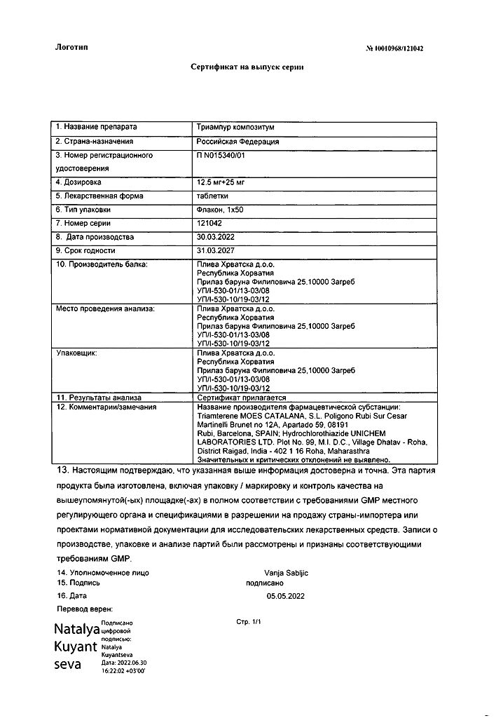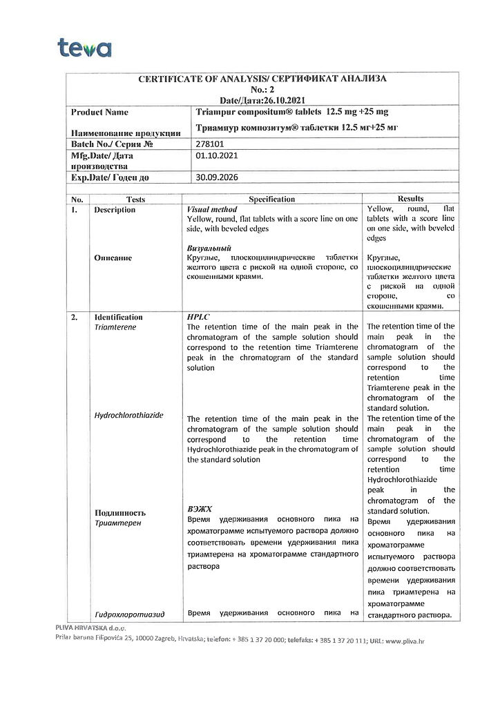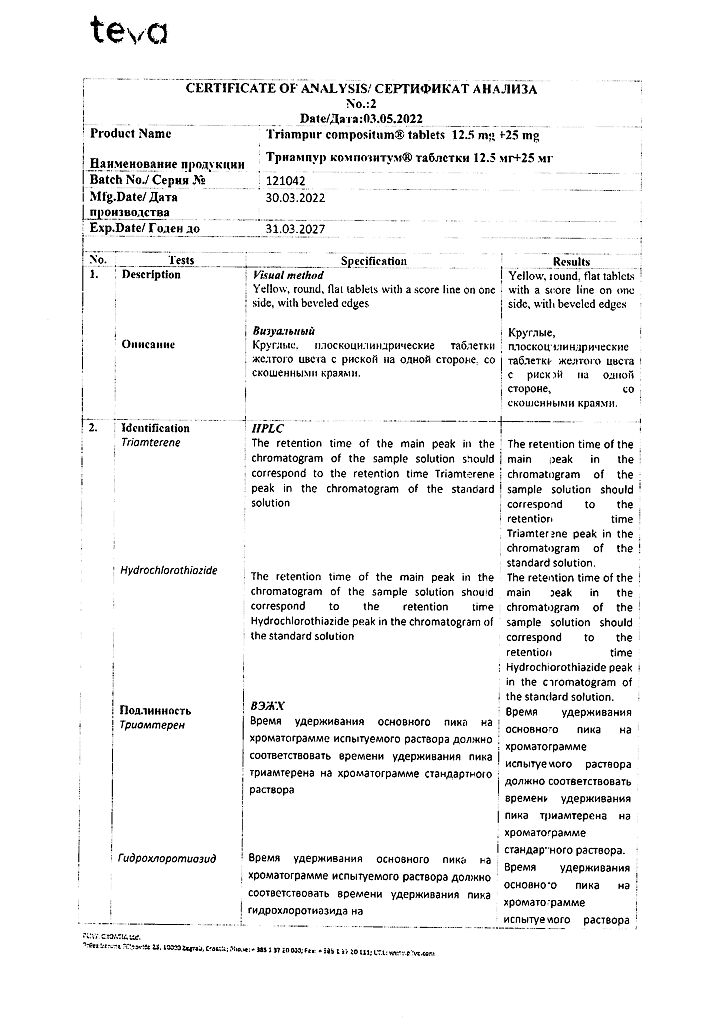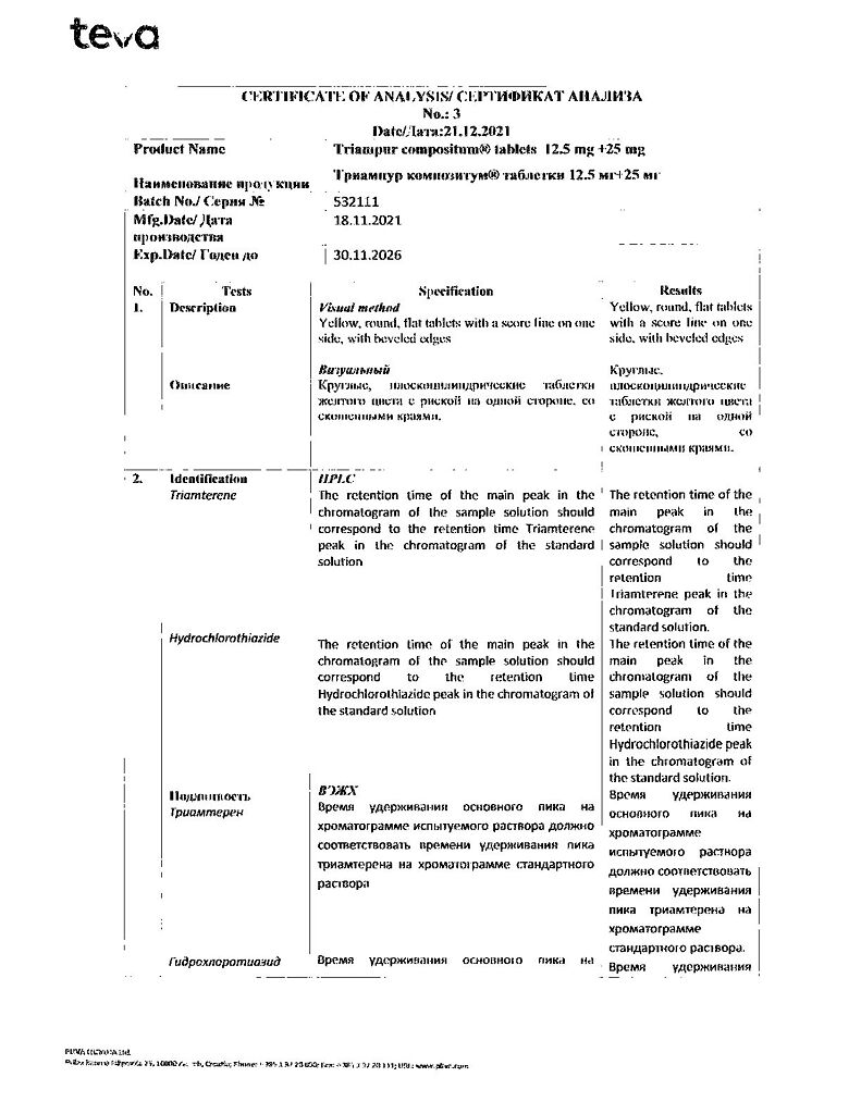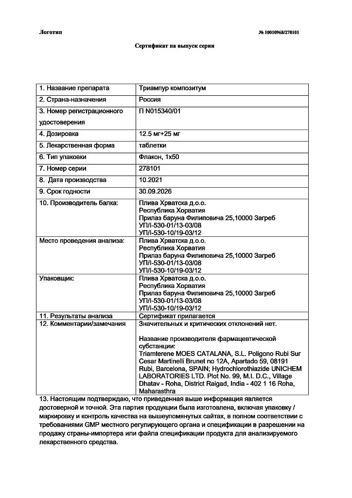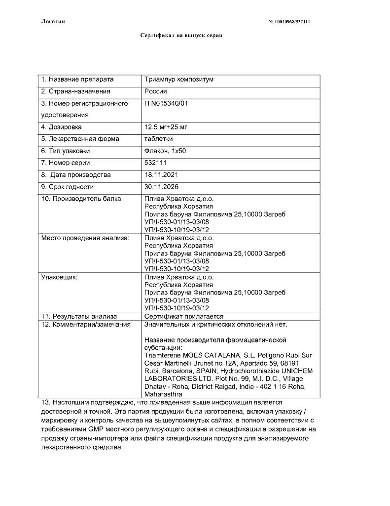 Триампур композитум таблетки 12,5 мг+25 мг 50 шт