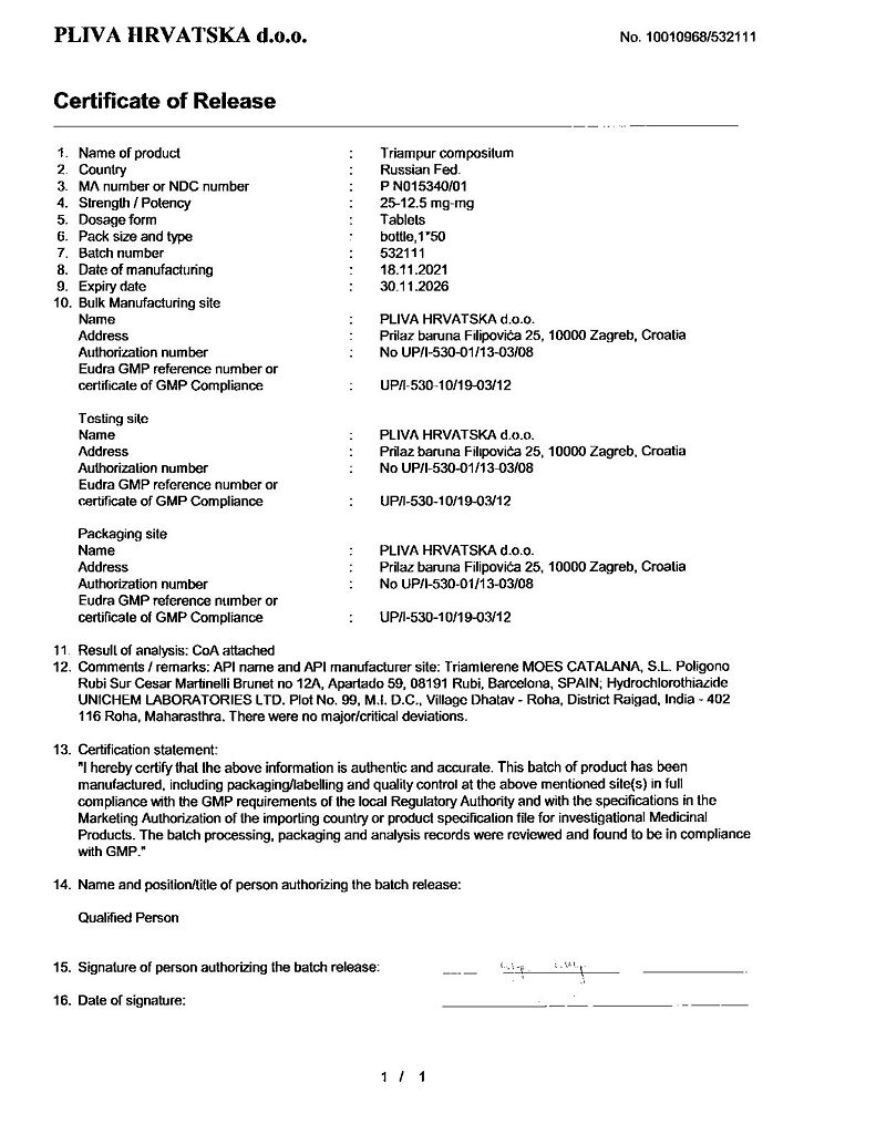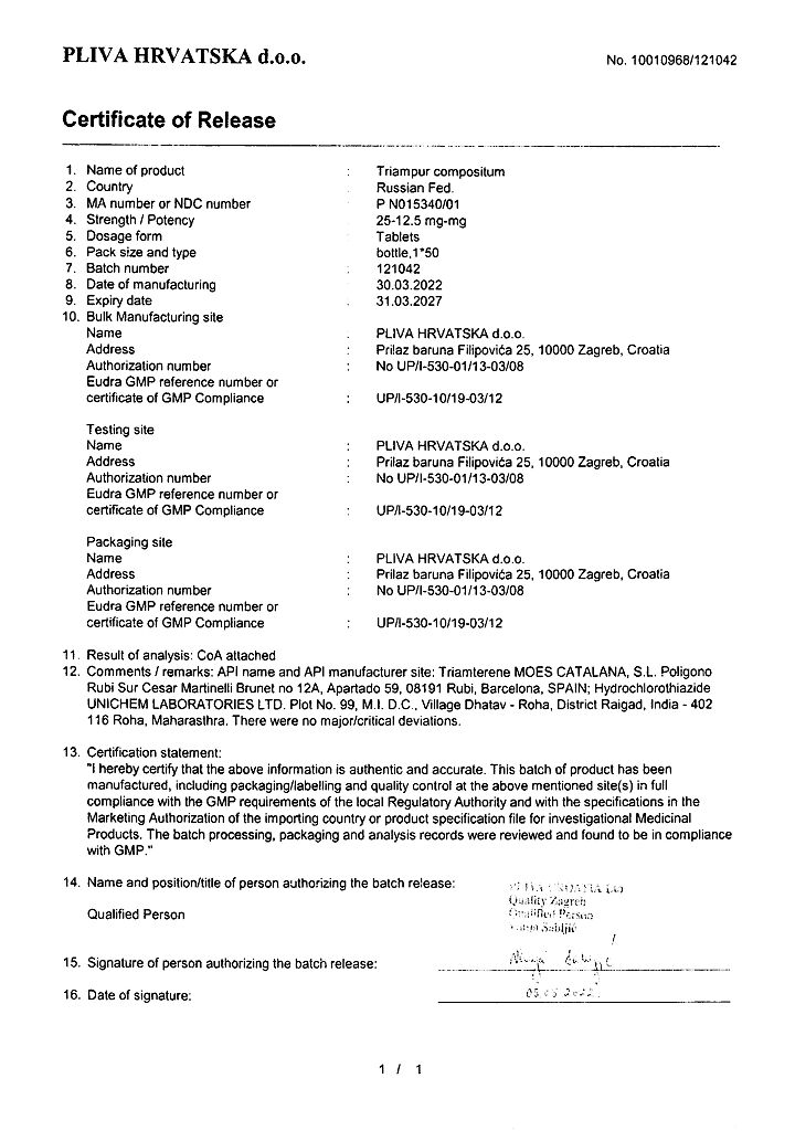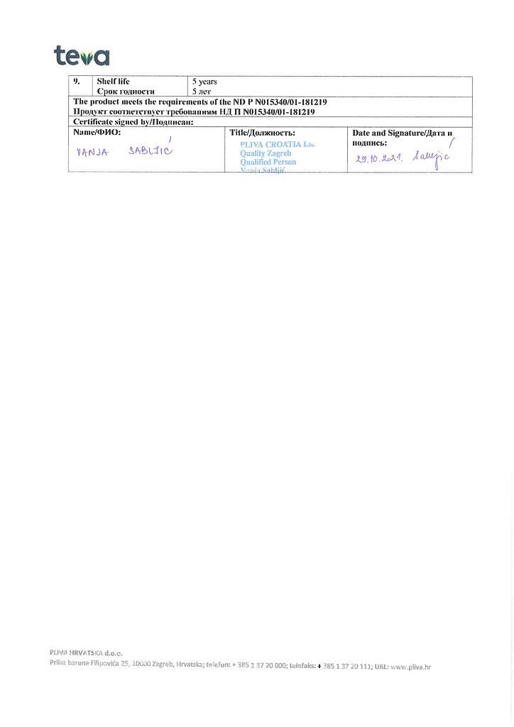 Производитель: Плива Хрватска д.о.о., Хорватия