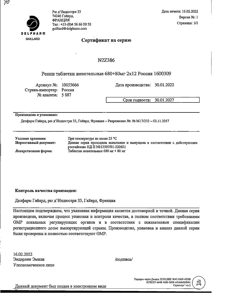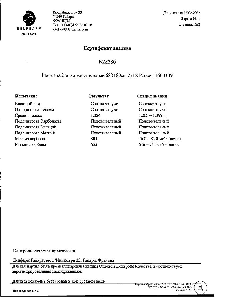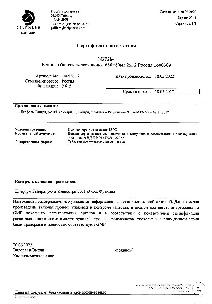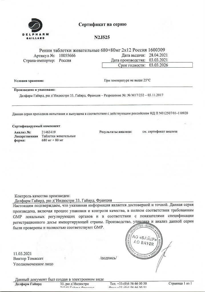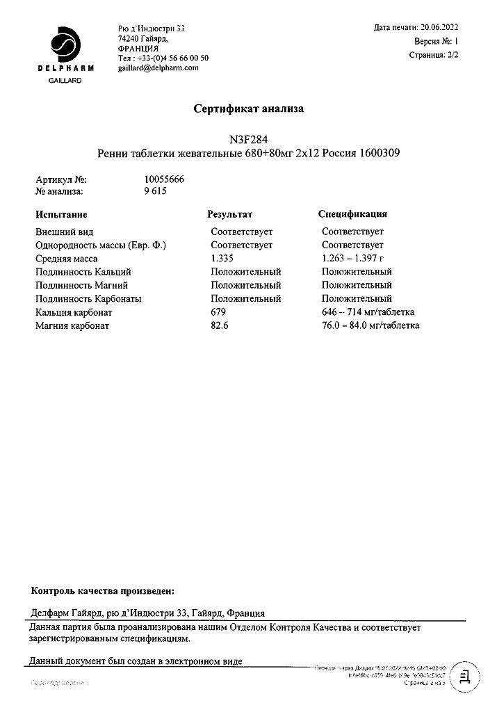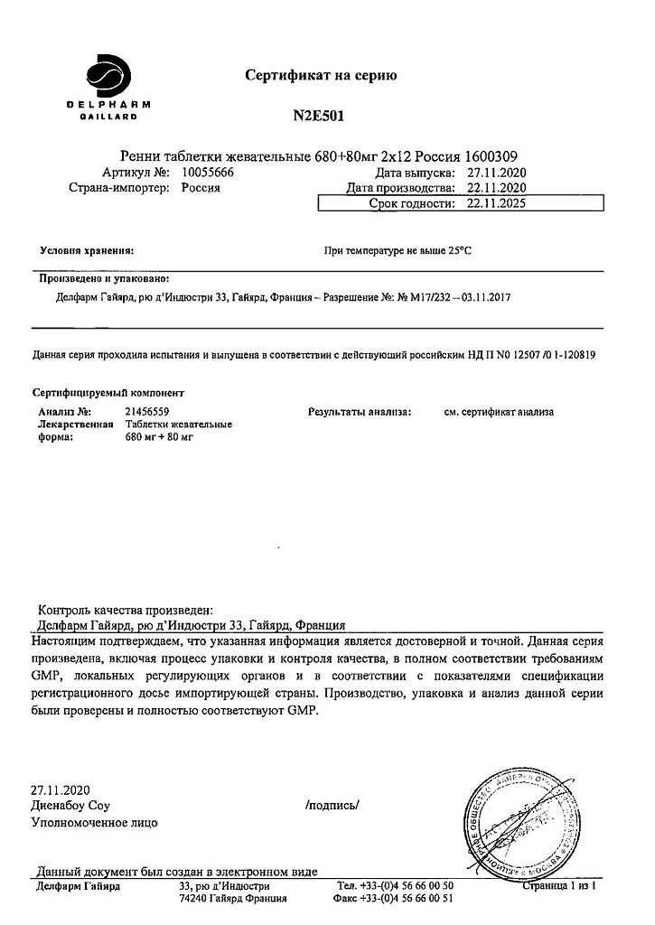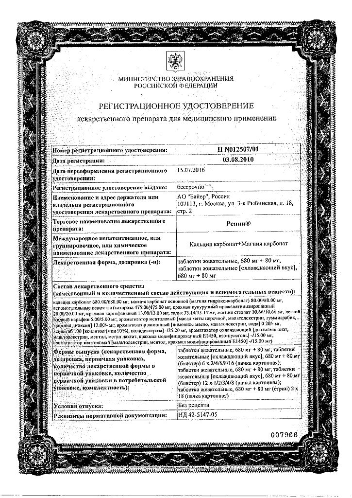 • Цена на Ренни в аптеках Анапы от 340 руб.