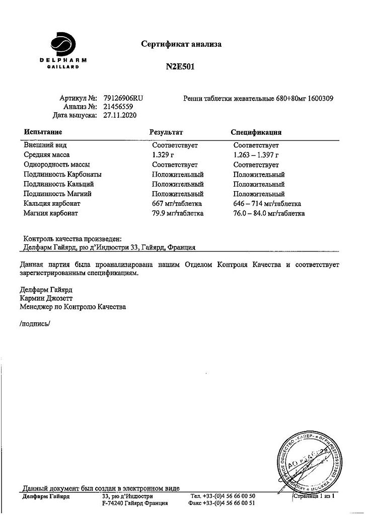 Действующее вещество: Кальция карбонат, Магния карбонат