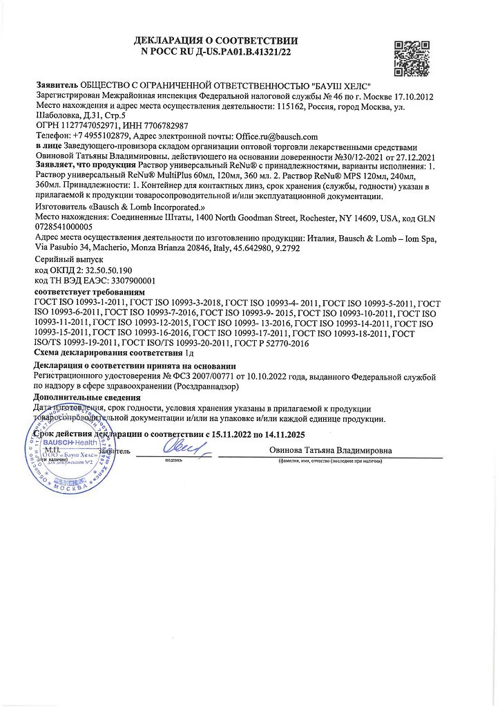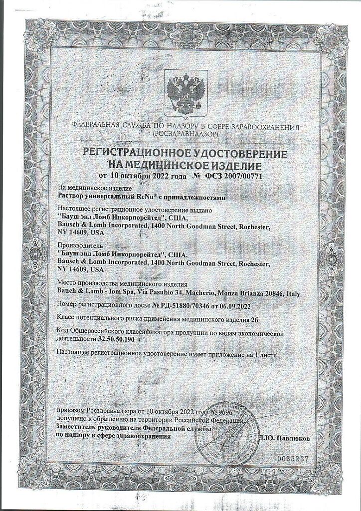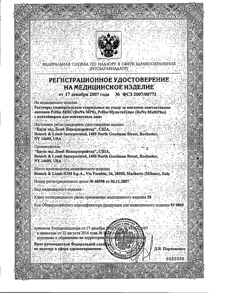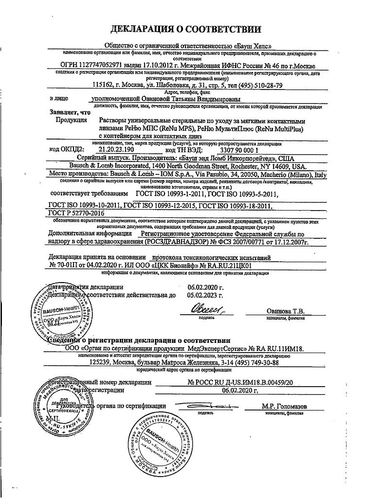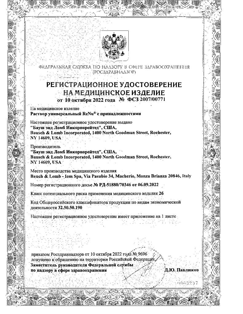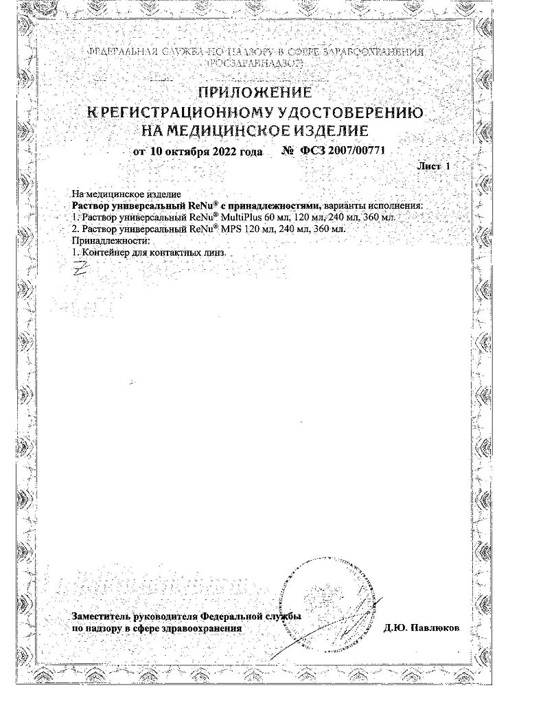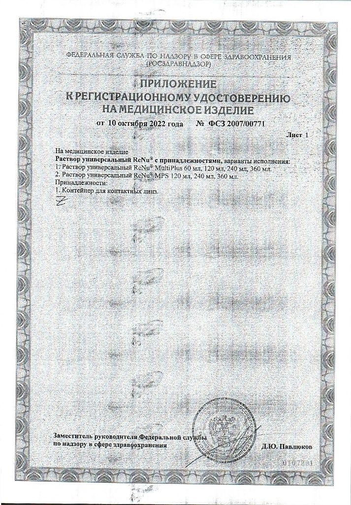 Документы Renu Multiplus раствор для линз универсальный 60 мл 1 шт
